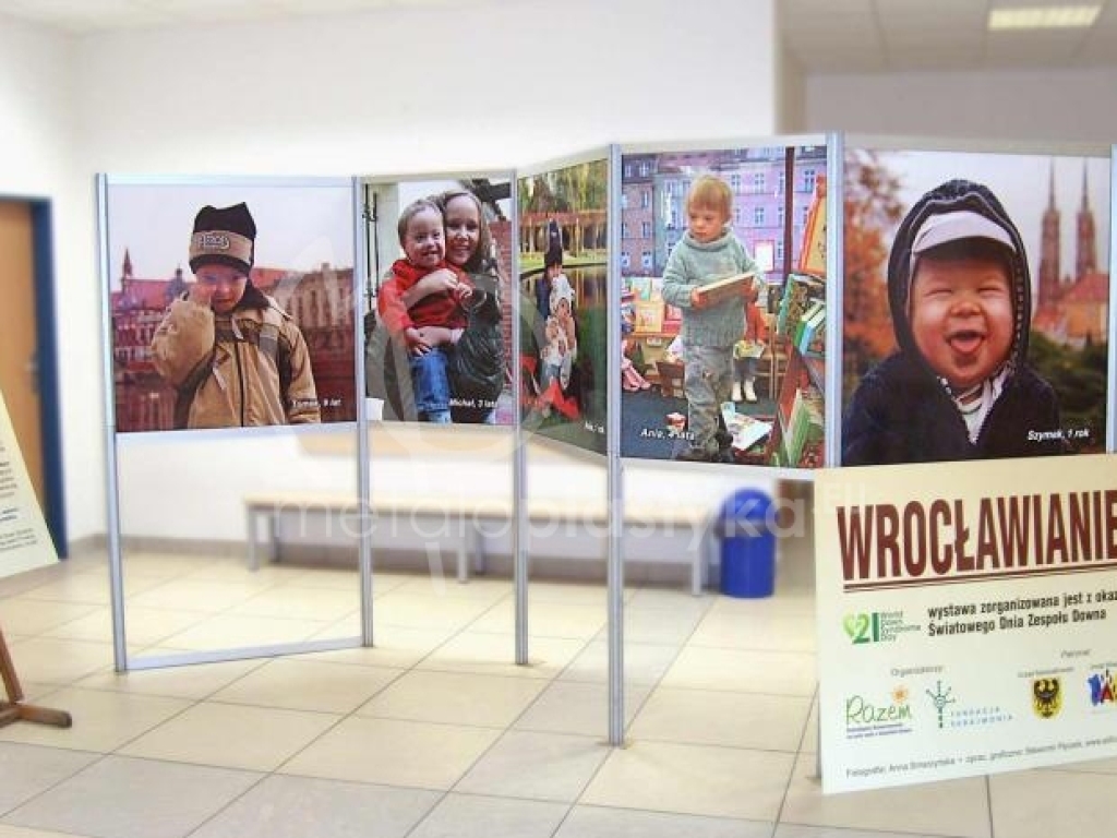 Wystawa "Wrocławianie" Stelaże INDOOR A łączone w ściany. Wystawa czasowa zlokalizowana na terenie Uniwersytetu Przyrodniczego we Wrocławiu.