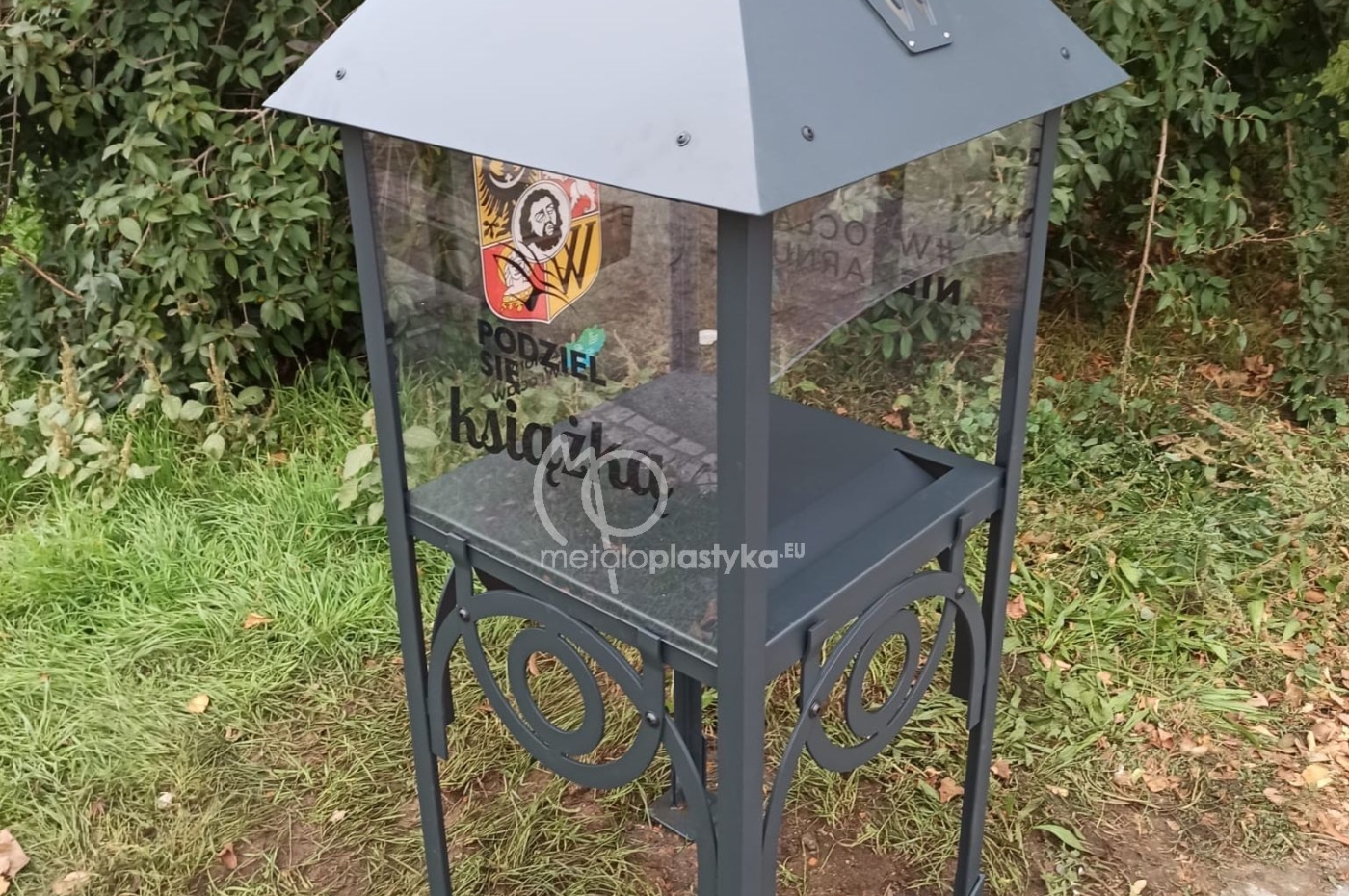 Budki wykonujemy z metalu i aluminium, lakierujemy proszkowo na wybrany kolor RAL (najczęściej antracytowy lub czarny). Boki są wykonywane z bezbarwnego poliwęglanu litego z indywidualnie zaprojektowanym graficznie wydrukiem UV (przygotowujemy projekt na podstawie wytycznych Klienta). Oferujemy również dostawę i montaż.