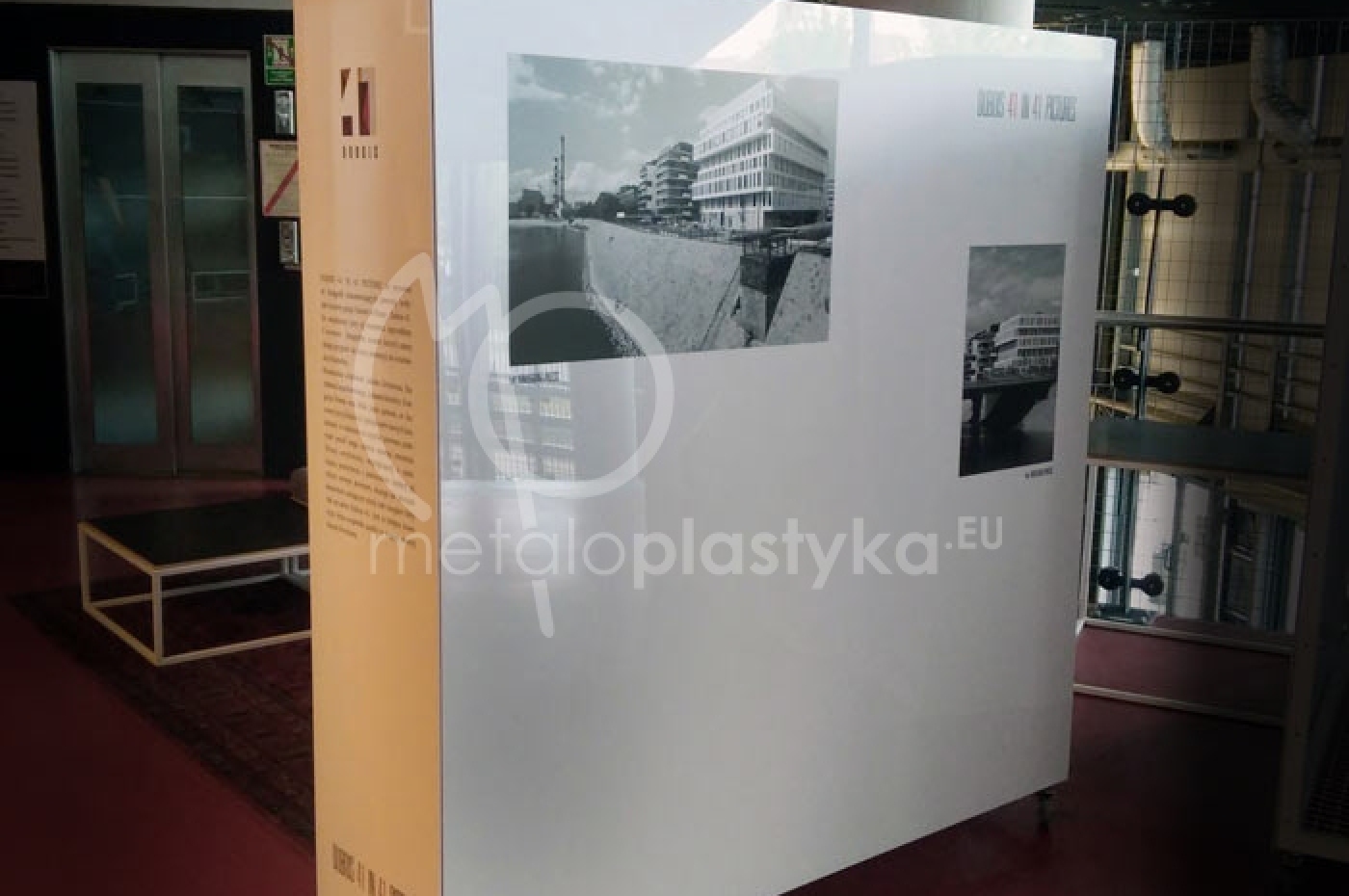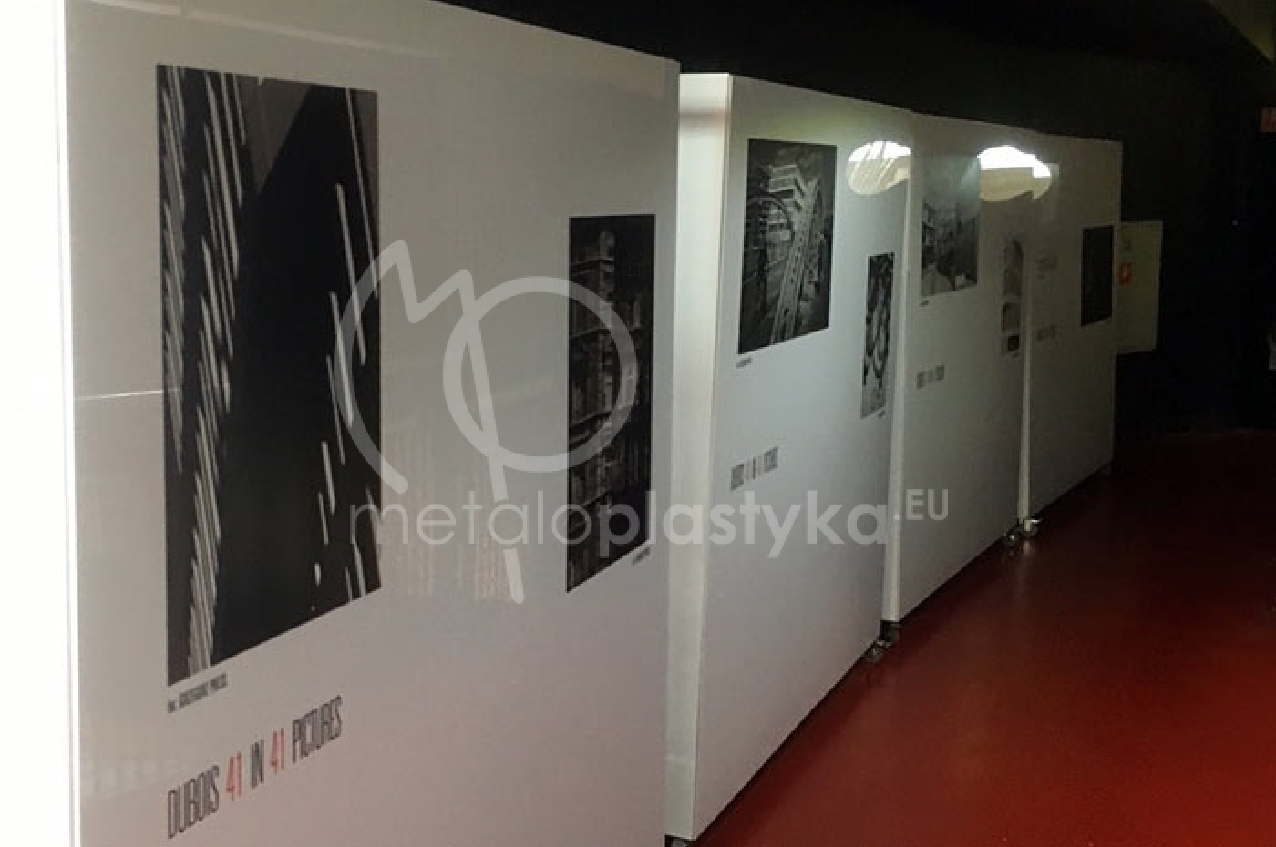 · wystawy plenerowe i wewnętrzne (najczęściej wykorzystywany materiał w stelażach typu OUTDOOR dzięki odporności na uszkodzenia mechaniczne oraz jakości wysycenia kolorów)