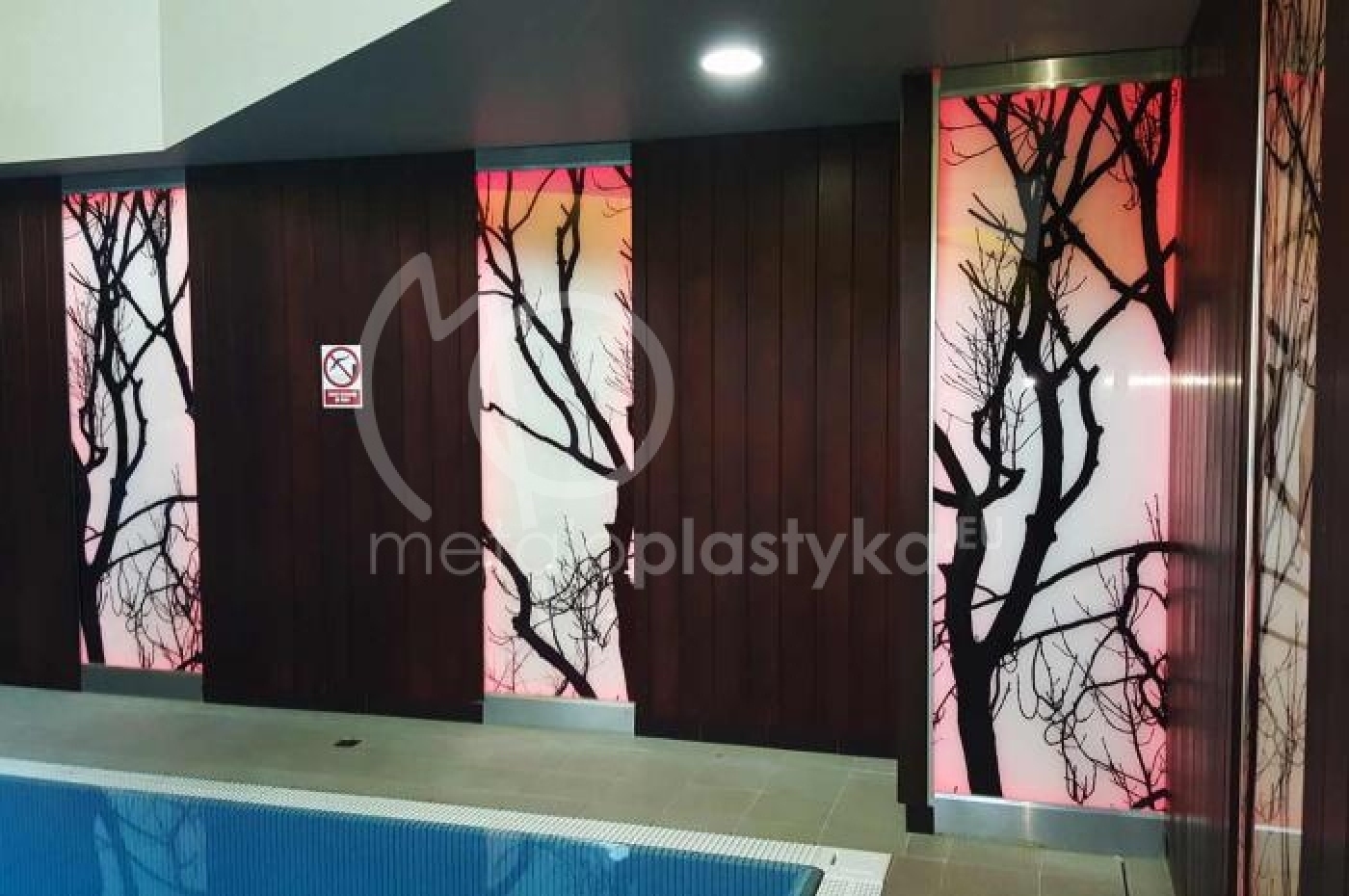 Wykonujemy też duże panele szklane z wydrukami do podświetleń, włącznie z oświetleniem.