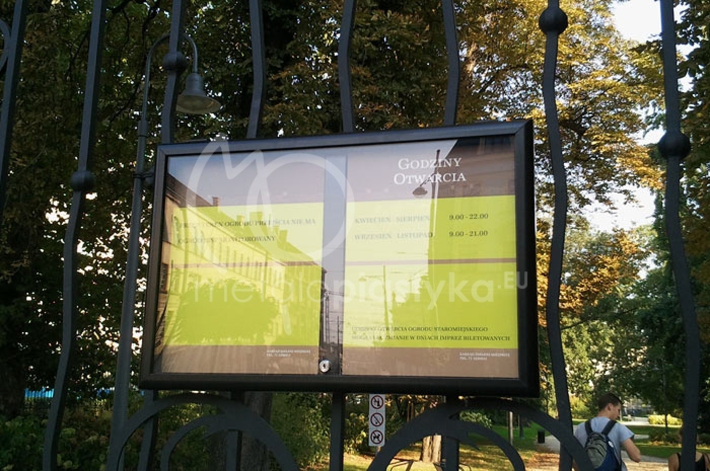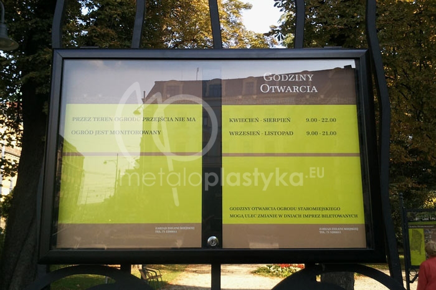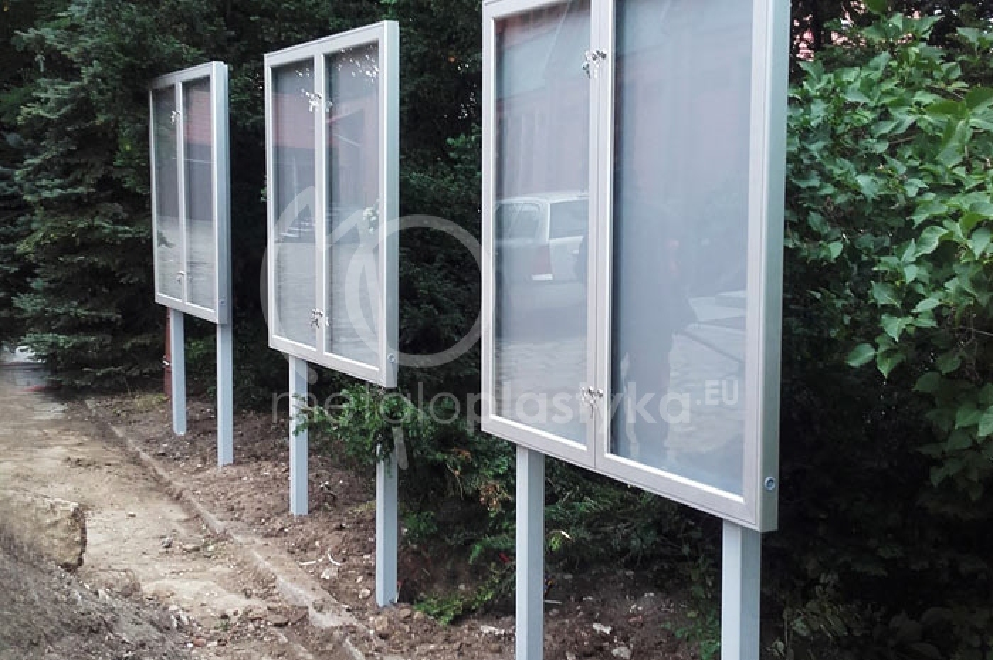 Produkujemy gabloty aluminiowe na wymiar wraz ze stojakiem stalowym do wbetonowania w grunt. Różne warianty gablot i różne rozmiary według potrzeb Klienta. Możliwość wykonania indywidualnego oznakowania gablot.