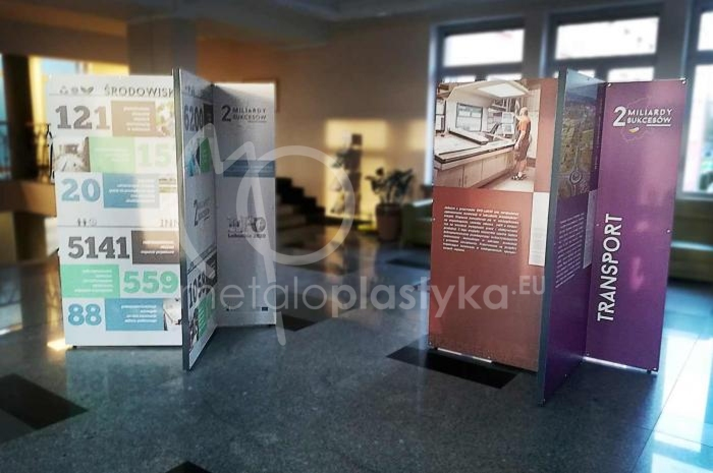 Uniwersalne ścianki wystawiennicze OUTDOOR (plenerowe) i INDOOR (do wnętrz) o budowie modułowej ułatwiającej transport i składowanie.