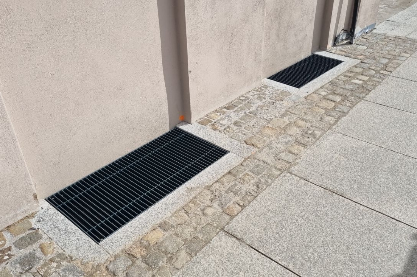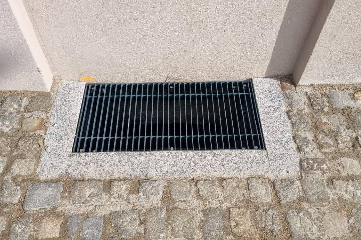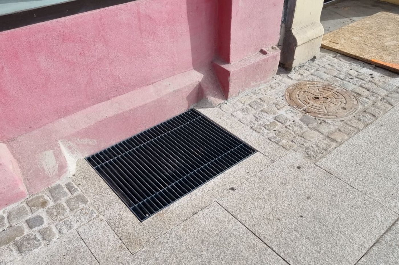 Nowoczesna osłona świetlika budynków miejskich - wykonana na wymiar z montażem w osłonie z obrzeża granitowego. Krata stalowa osadzona w ramie z regulacją poziomu dostosowana do wymagań wentylacji piwnic starych budynków miejskich. Nowoczesne wykonanie idealnie komponuje się z innymi elementami małej architektury, spełniając najwyższe standardy jakości.