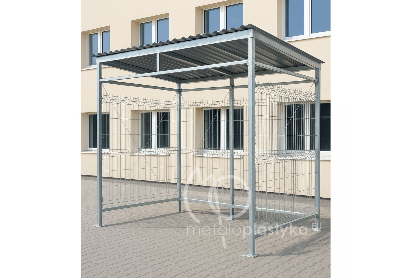 Konstruujemy i produkujemy stalowe wiaty śmietnikowe na kontenery śmietnikowe na kołach oraz dużę kosze śmietnikowe.