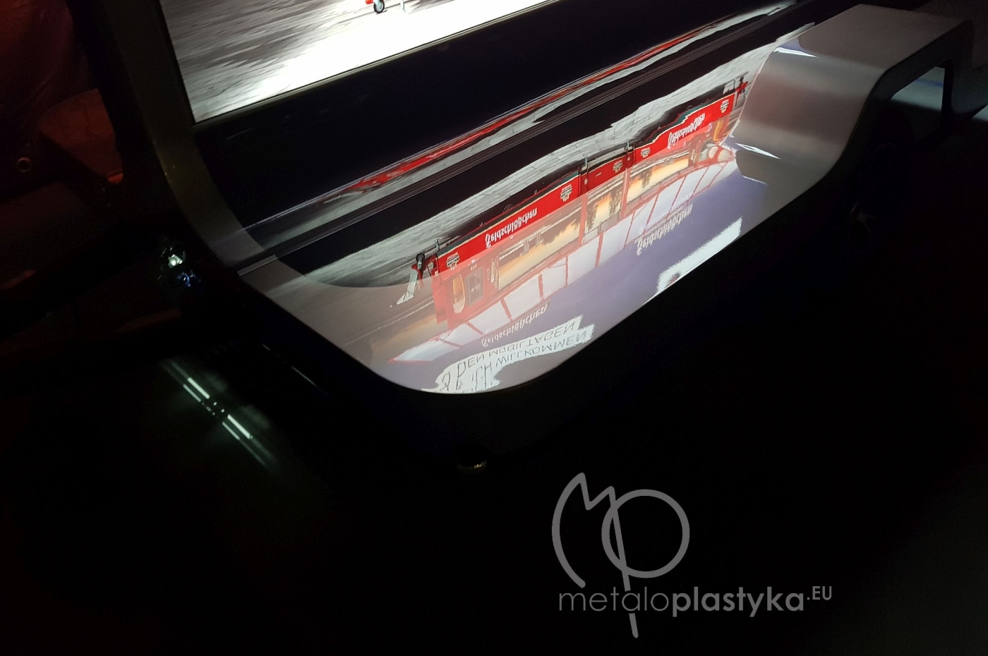 Rodzaj druku: druk UV do podświetleń na poliwęglanie litym bezbarwnym z efektem druku widzianym przez materiał (efekt "szkła").