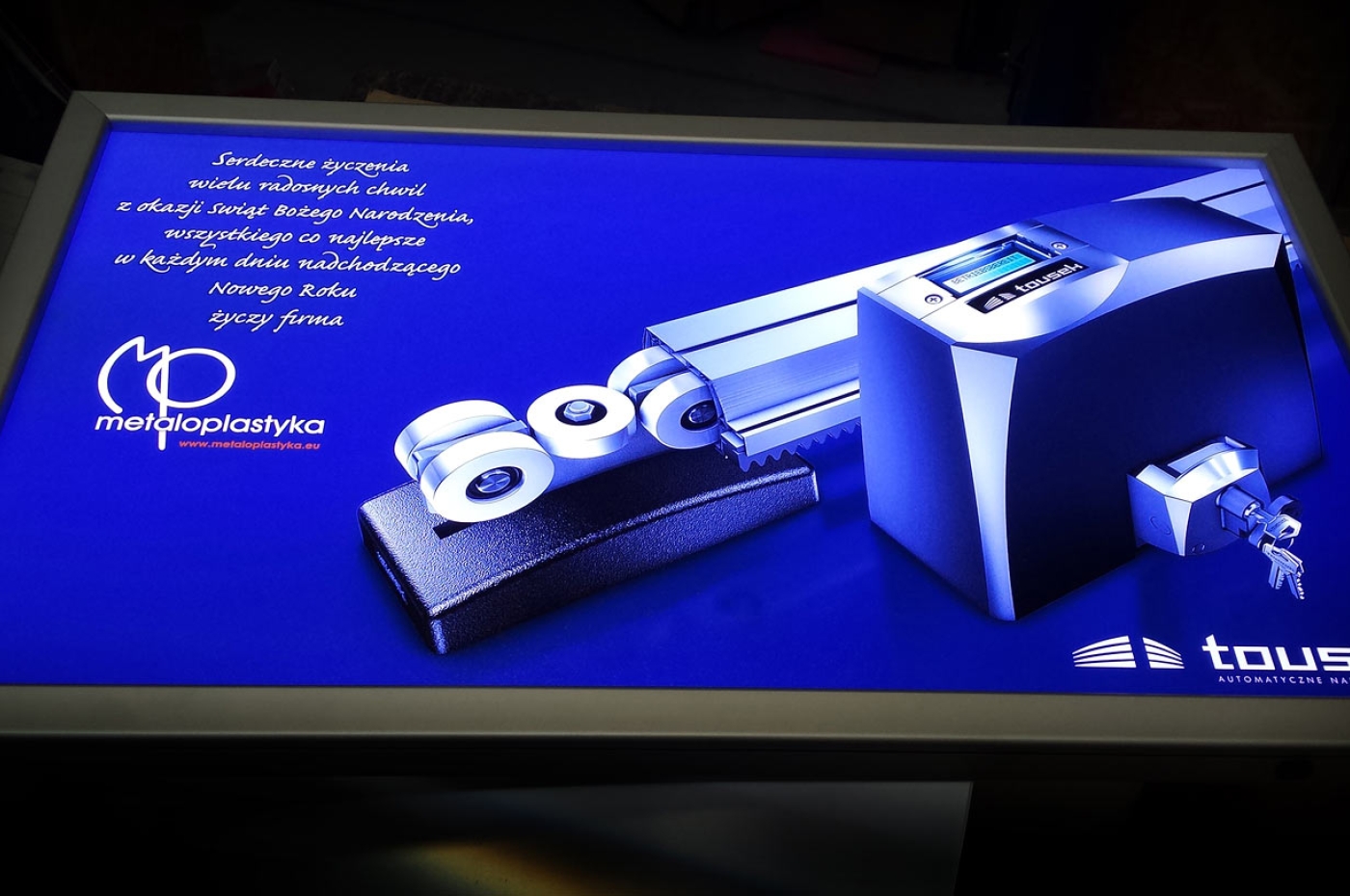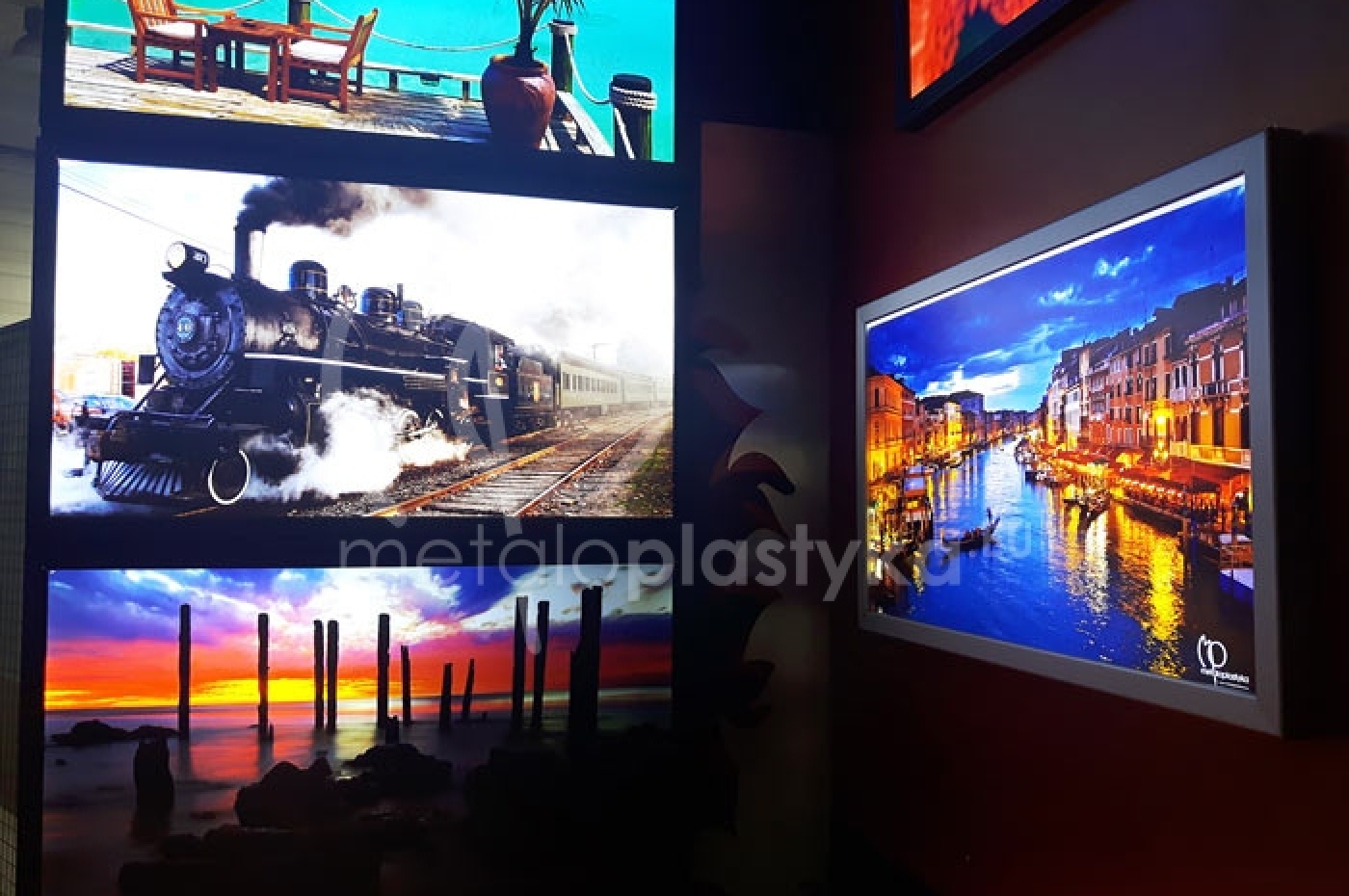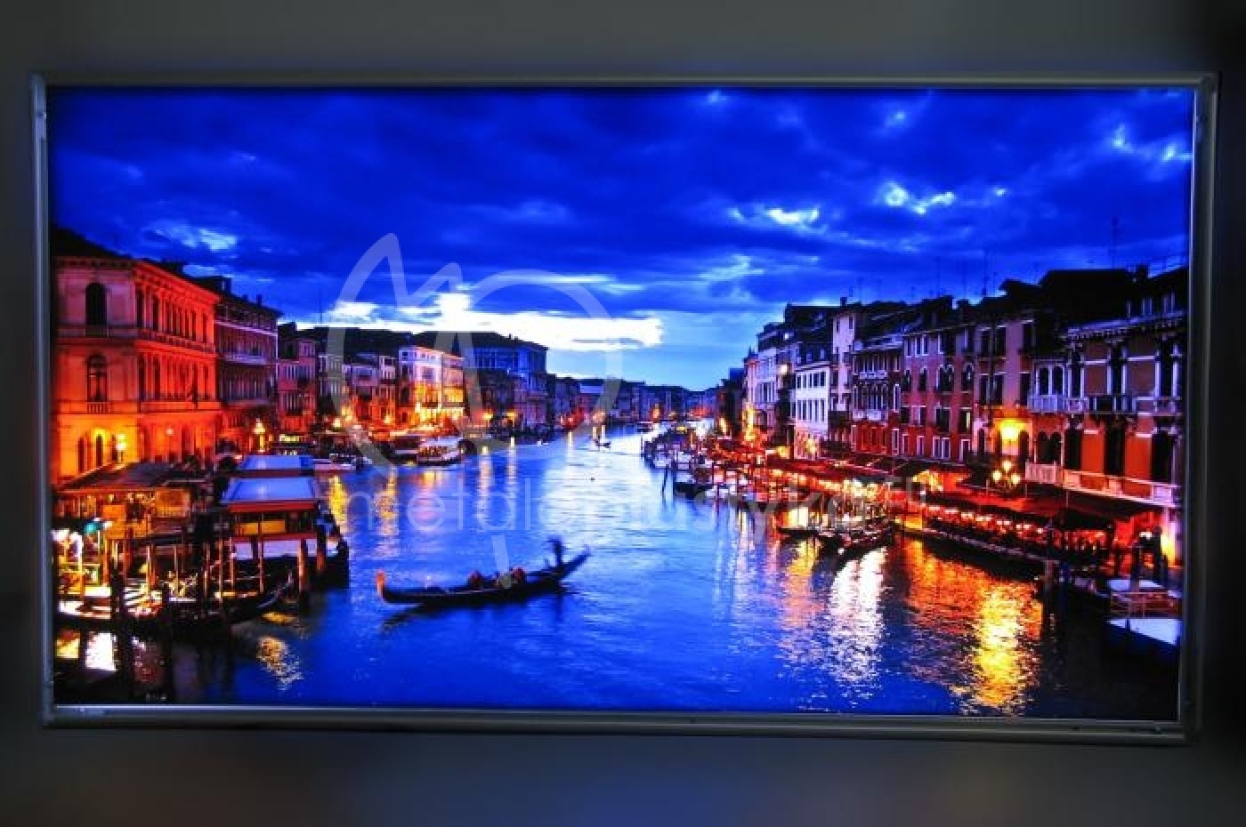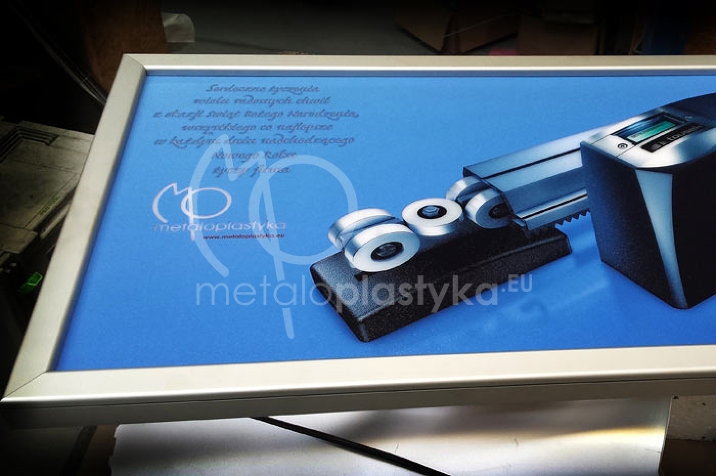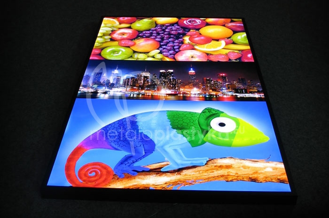 Profesjonalna rama z podświetlanym lico do prezentacji wydruków z wysyceniem kolorów porównywalnym z telewizorem. Rama z szybką wymianą plakatu i regulacją jasności. Certyfikowana jasność świecenia potwierdzona przez certyfikowane laboratorium.