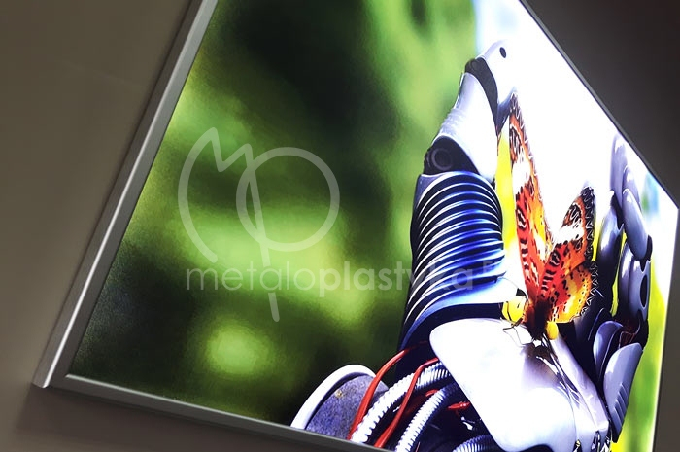 Płaszczyzna podświetlana na całej powierzchni jednolicie za pomocą diód LED umieszczonych w ramie (profilach aluminiowych).