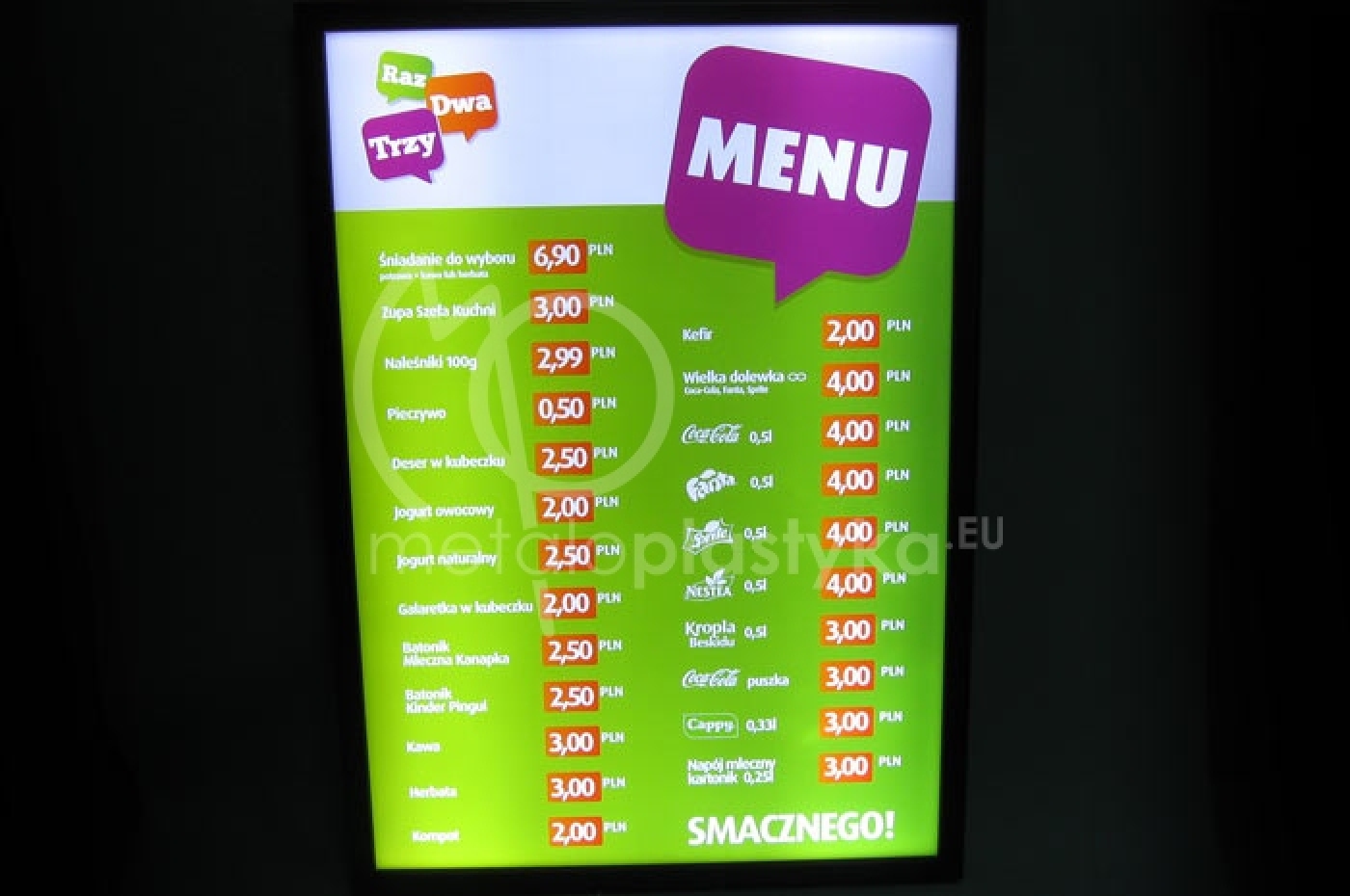 Wydruki wykonujemy w technologii UV w specjalnym trydbie do podświetleń (żywe kolory przy bardzo mocnym nawet podświetleniu).