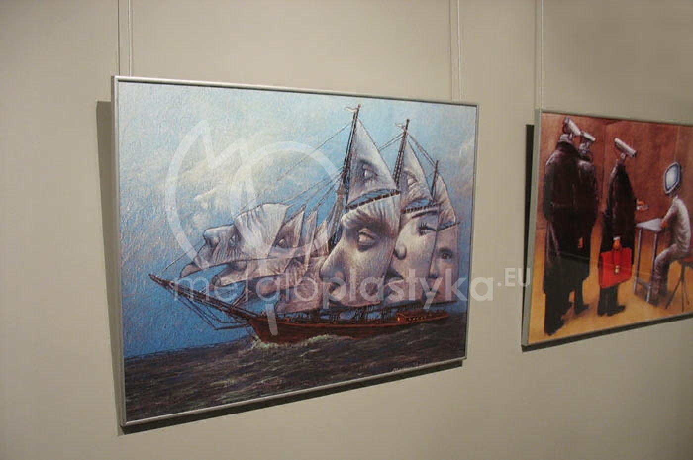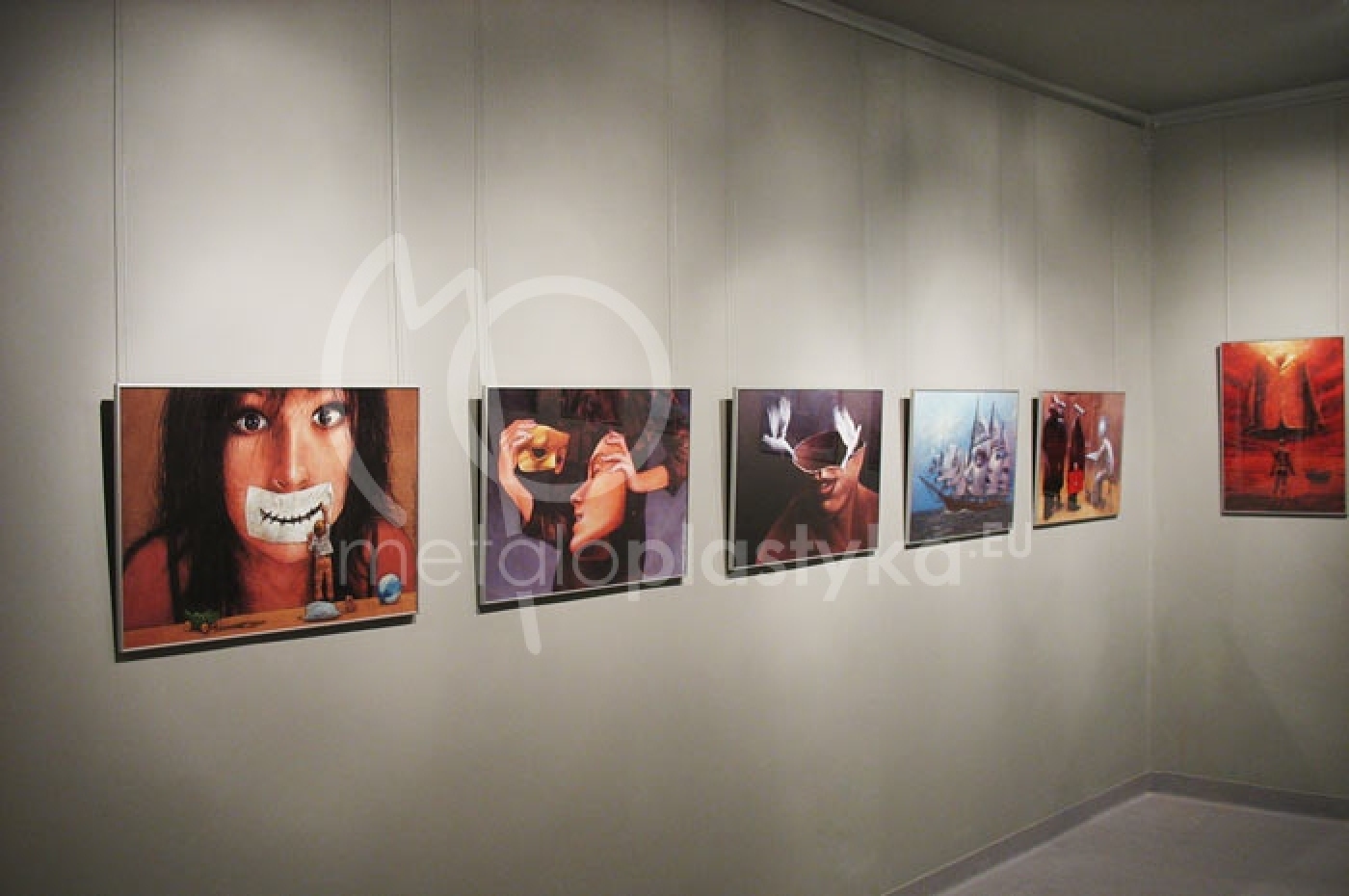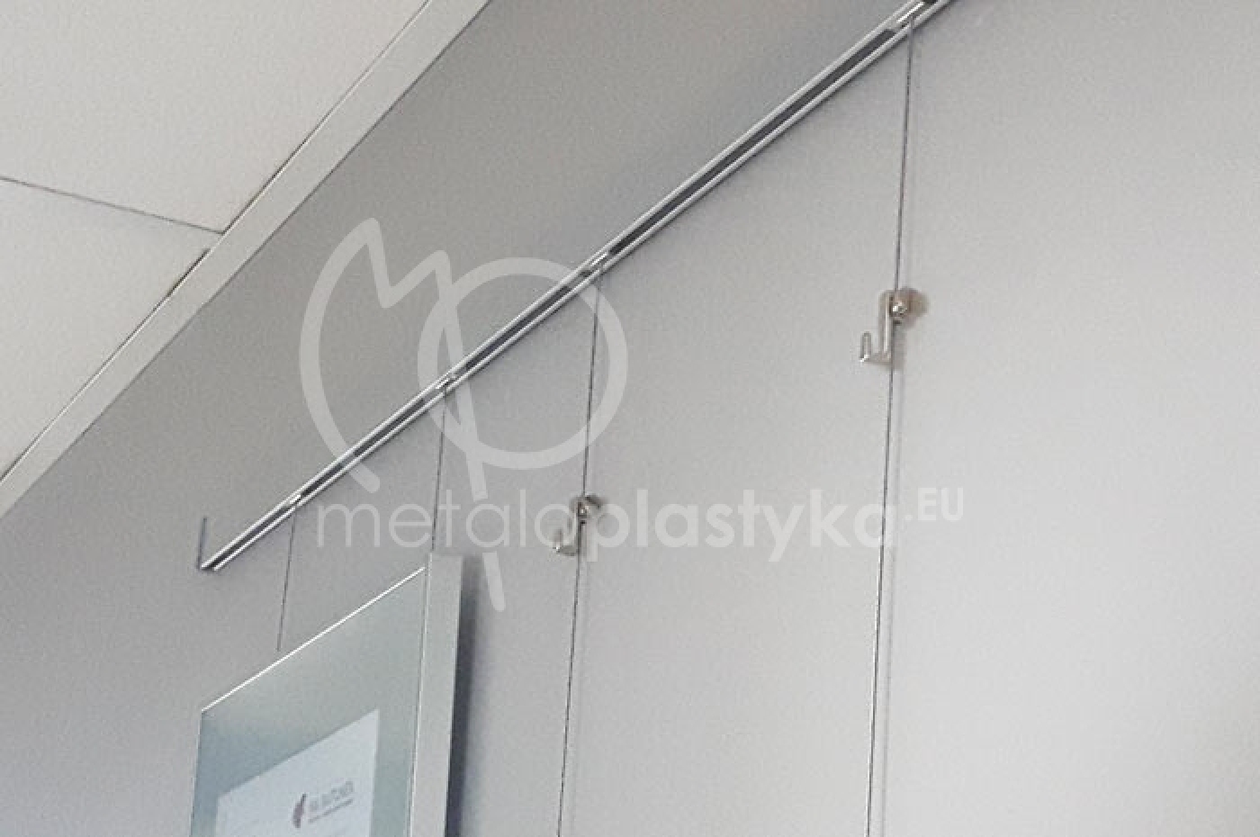 System linkowy do podwieszania obrazów (przysufitowy). Jest to profil aluminiowy występujący w wersji slim oraz strong, do podwieszania linek przesuwnych w poziomie wzdłuż profila aluminiowego, na których przykręcane są haczyki umożliwiające ekspozycję ramek lub wydruków z opcją zaczepienia za hak. Haczyki są regulowane na lince (wysokość góra dół).