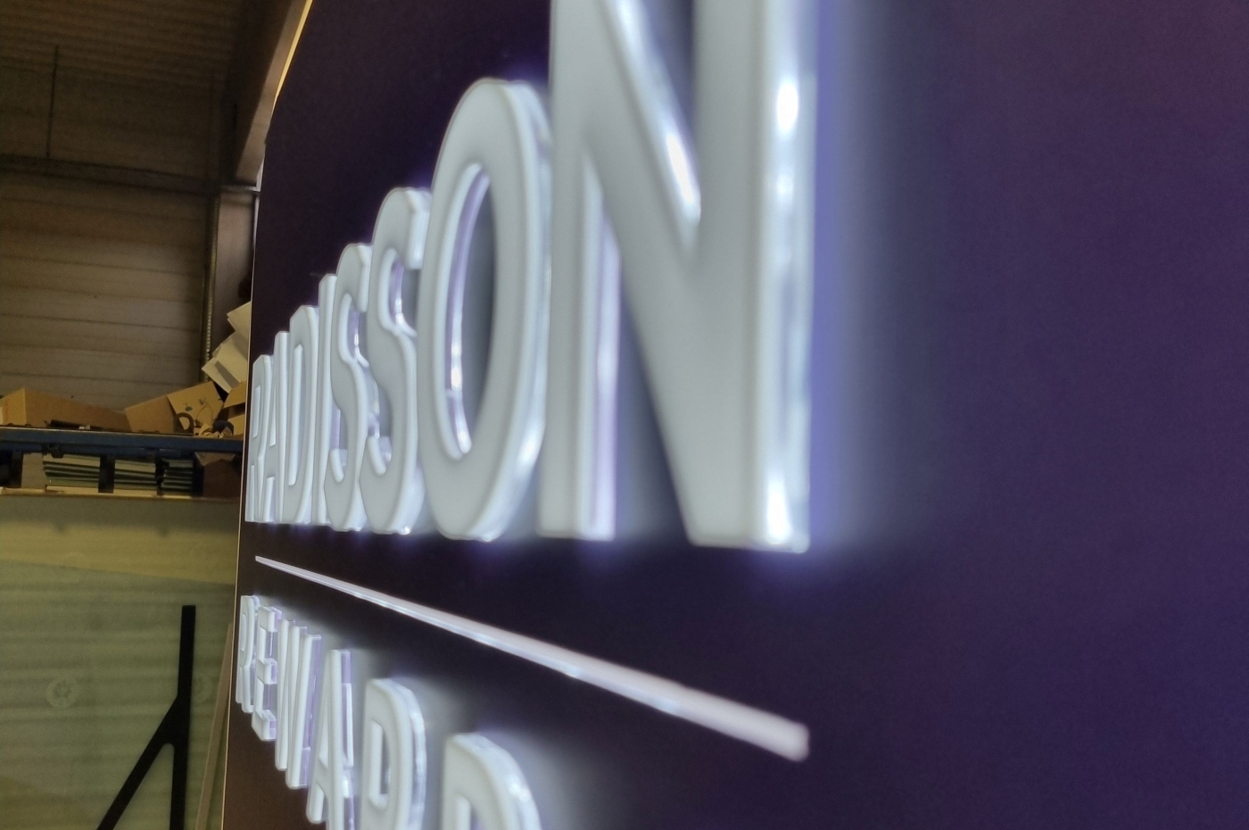 - Indywidualne logo lub litery podświetlane LED, wykonane z plexi wypukłej na 1 cm