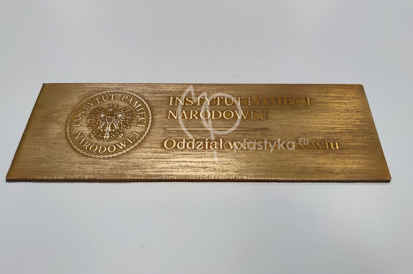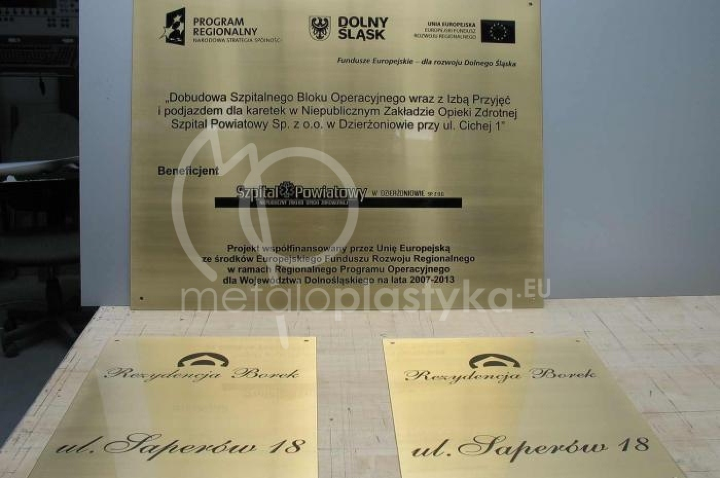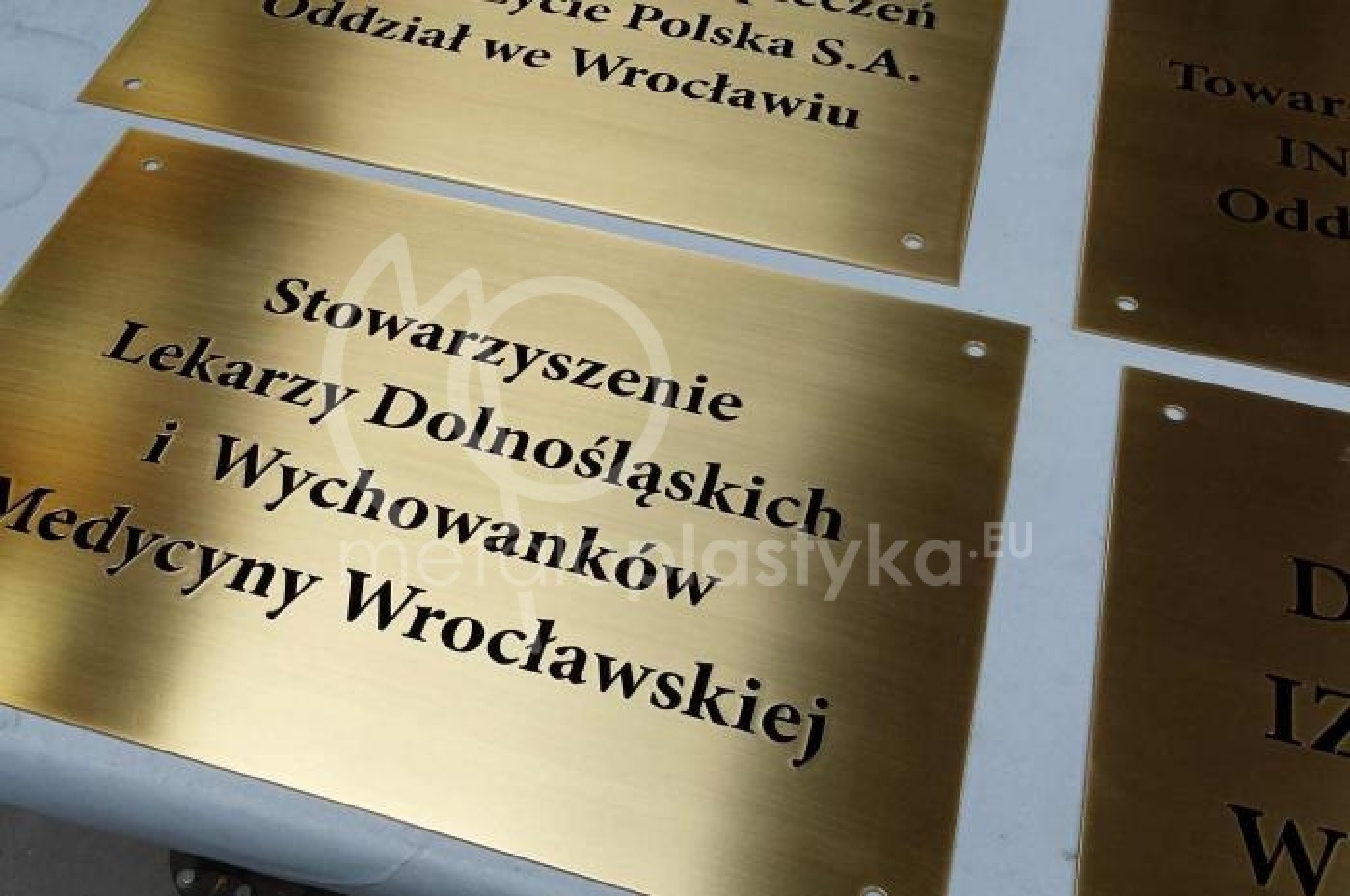 Tablice z mosiądzu wykonywane metodą chromatografii (wytrawiania) lub z nadrukiem UV.