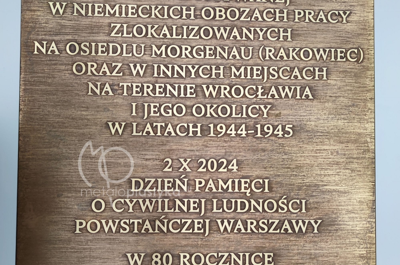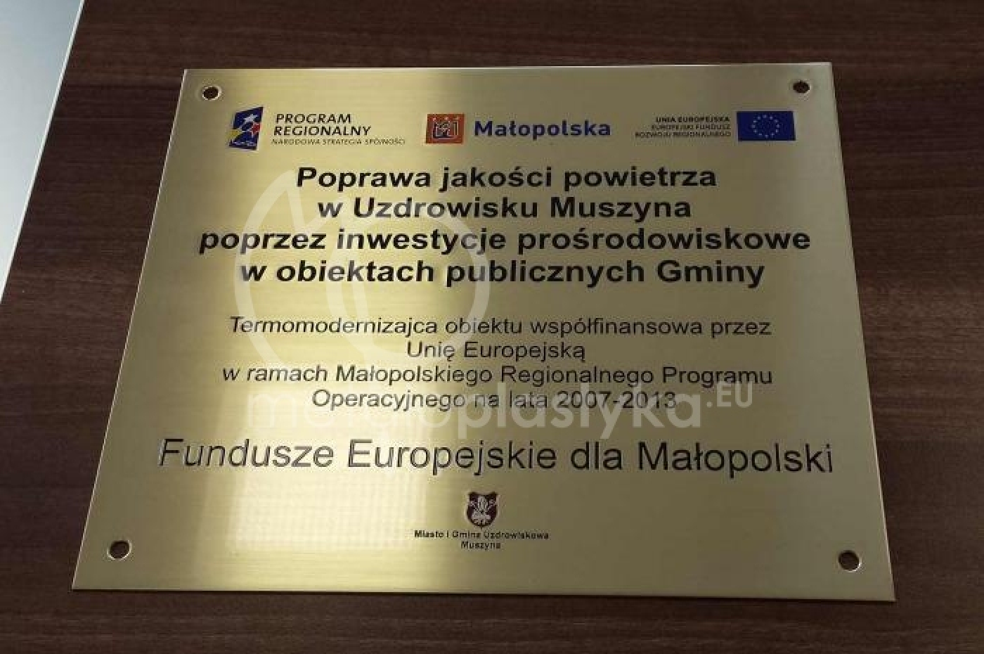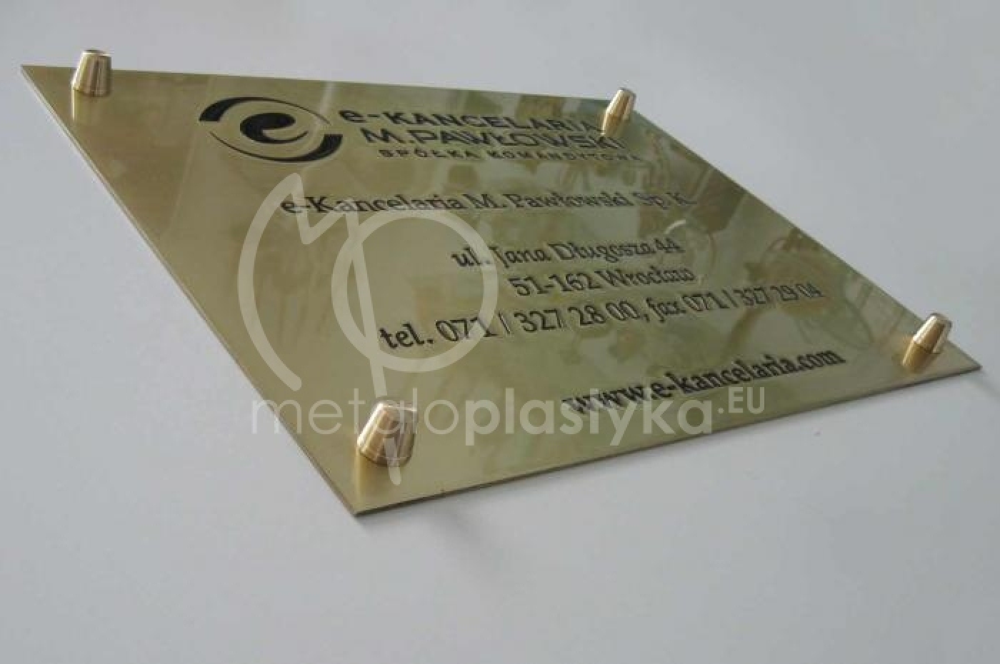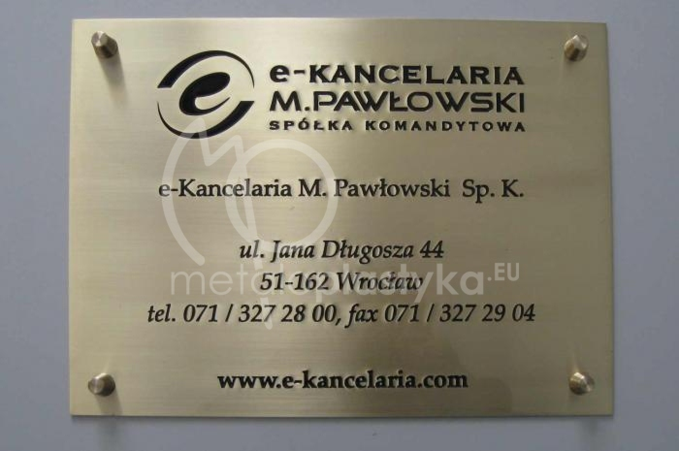 Tablice z mosiądzu wykonywane metodą chromatografii (wytrawiania) lub z nadrukiem UV.