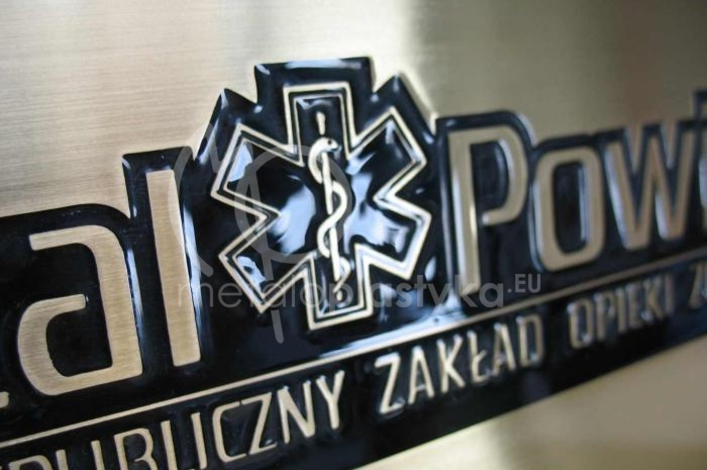 Tablice produkujemy metodą wytrawiania (głębokie wgłębienia liter i znaków graficznych), które następnie wybłyszczamy lub pokrywamy farba (czarno-białe: monochromatyczne albo kolorowe, w tym logotypy).