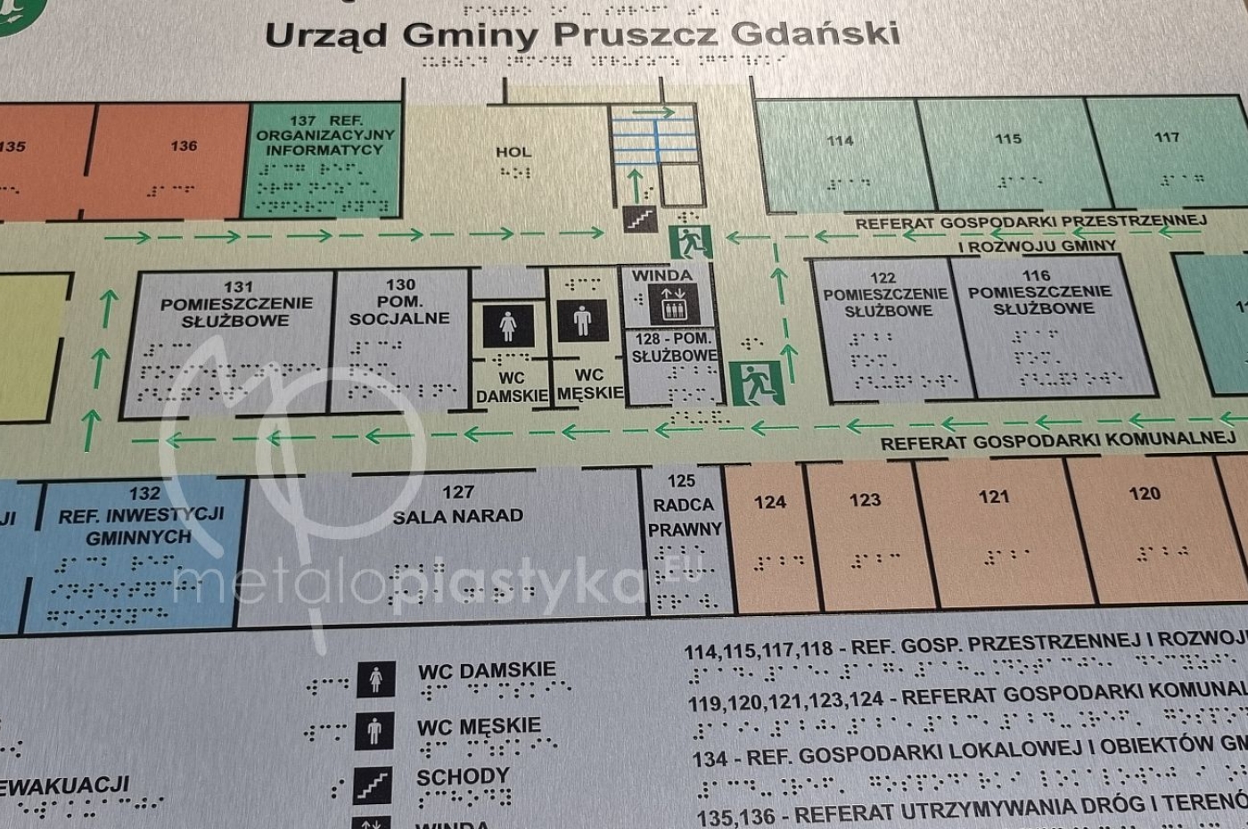 Wykonujemy tablice z tworzywa (pvc, dibond) z tłumaczeniem nadrukowanym wypukłym o odpowiedniej grubości czytelnej dla niewidomych.
