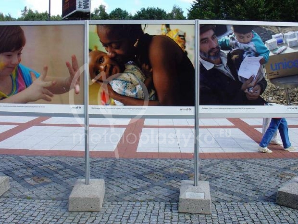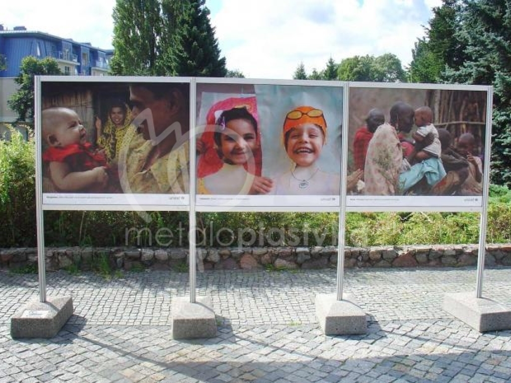 Realizacje ekspozycji muzealnych. Stelaże ekspozycyjne Outdoor A łączone w ściany po 3
