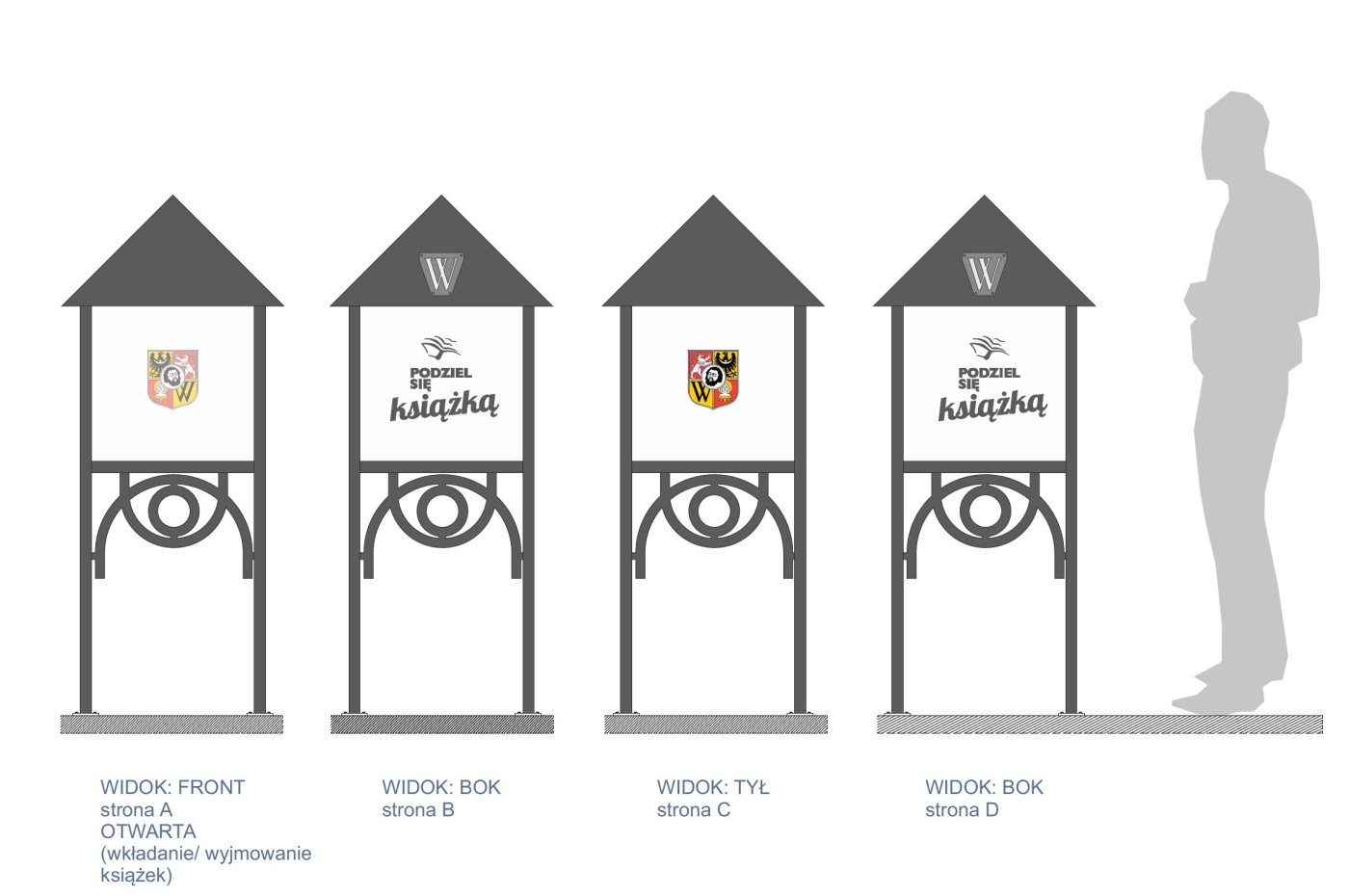 Budka bookcrossingowa to forma małej architektury miejskiej, przeznaczona dla pasjonatów czytania chętnych do darmowego dzielenia się książkami, które są już nie potrzebne. Ta piękna, nowa inicjatywa zdobywa coraz większą popularność w polsich miastach, gdzie społeczeństwo chętnie wymienia się zupełnie za darmo książkami w przestrzeni publicznej. Po prostu zostaw niepotrzebne książki a skorzystaj z tych pozostawianych przez innych. Po przeczytaniu znów oddaj książki i podejmij inne. W ten sposób budka na książki funkcjonuje jak mini biblioteka miejska. Poniżej prezentujemy oferowane wzory budek bookcrossingowych z indywidualnym wzornictwem w kilku wersjach.