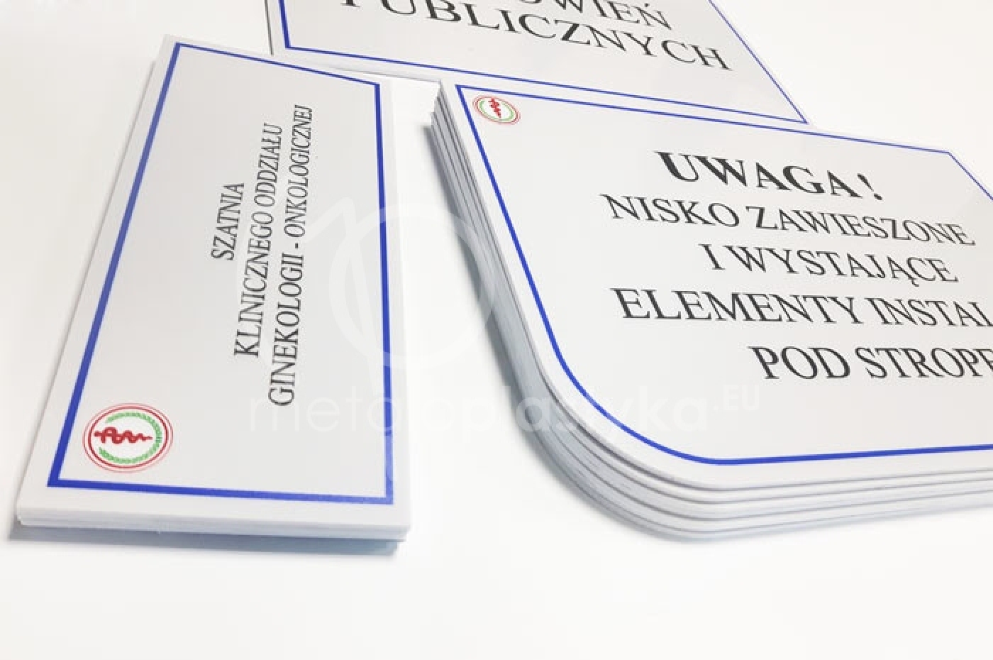 Wydruk UV na płycie HIPS (wysokoudarowe, utwardzane PVC z powłoką białą błyszczącą).