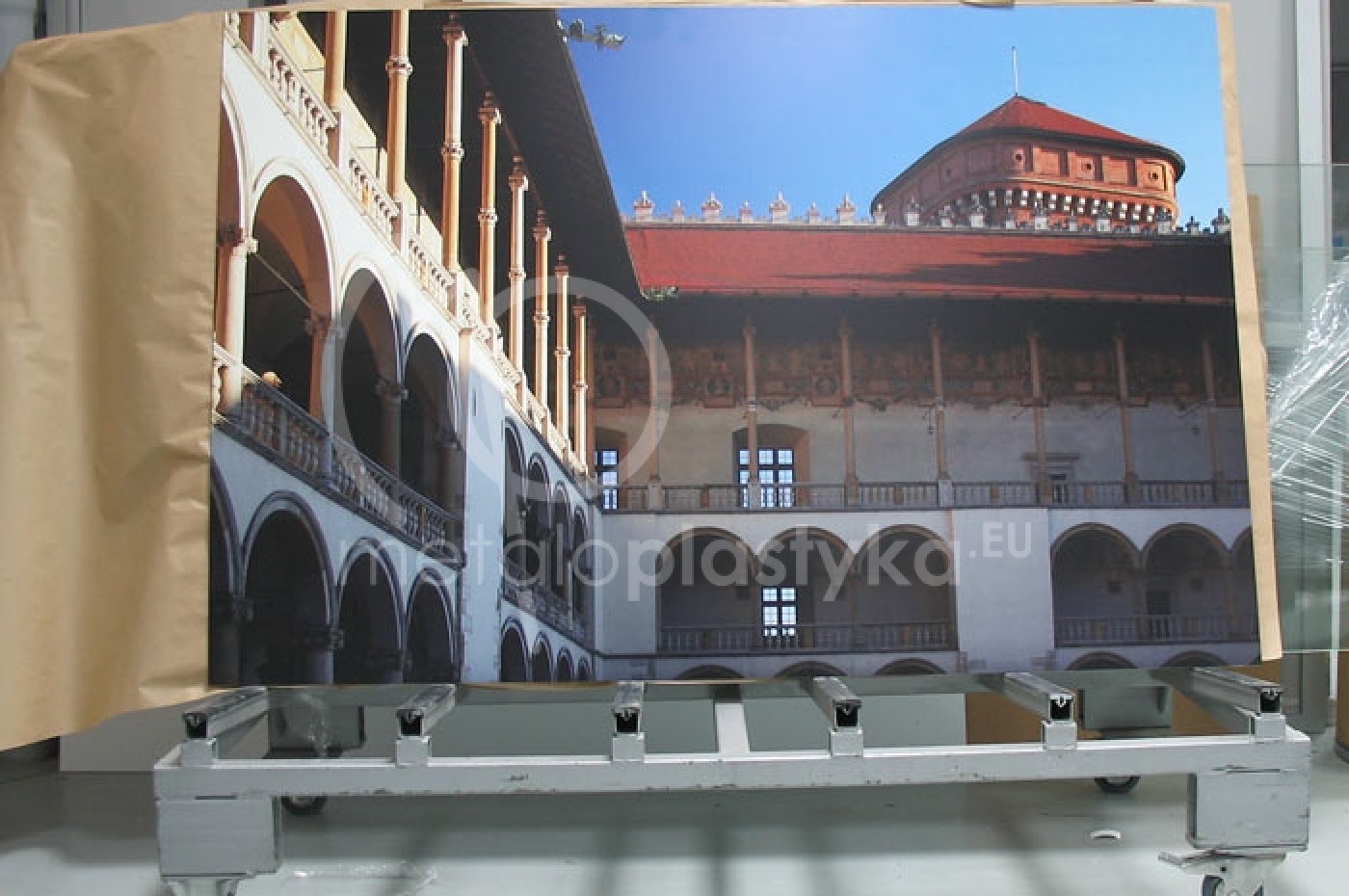 Wydruki bezpośrednio na powierzchni płyty pozwalają osiągnąć wysokie wysycenie kolorów, połysk osiągany jest w miejscach w których występuje biel w pliku.