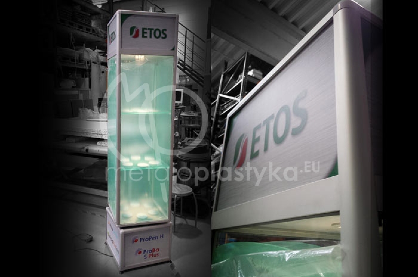 Gabloty aluminiowe, wiszące, muzealne, wewnętrzne