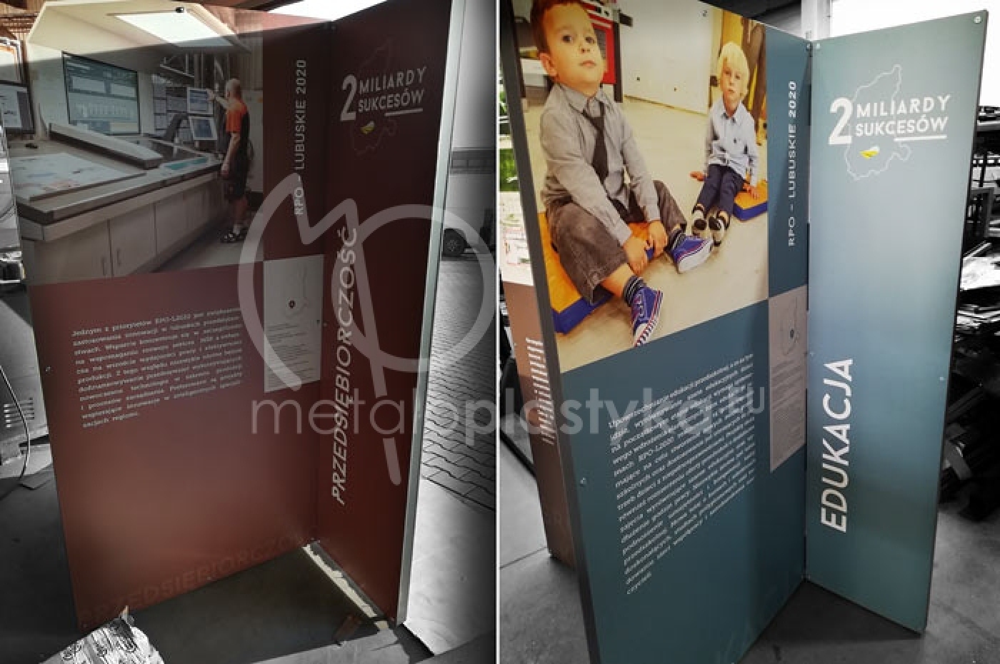 Uniwersalne ścianki wystawiennicze OUTDOOR (plenerowe) i INDOOR (do wnętrz) o budowie modułowej ułatwiającej transport i składowanie.