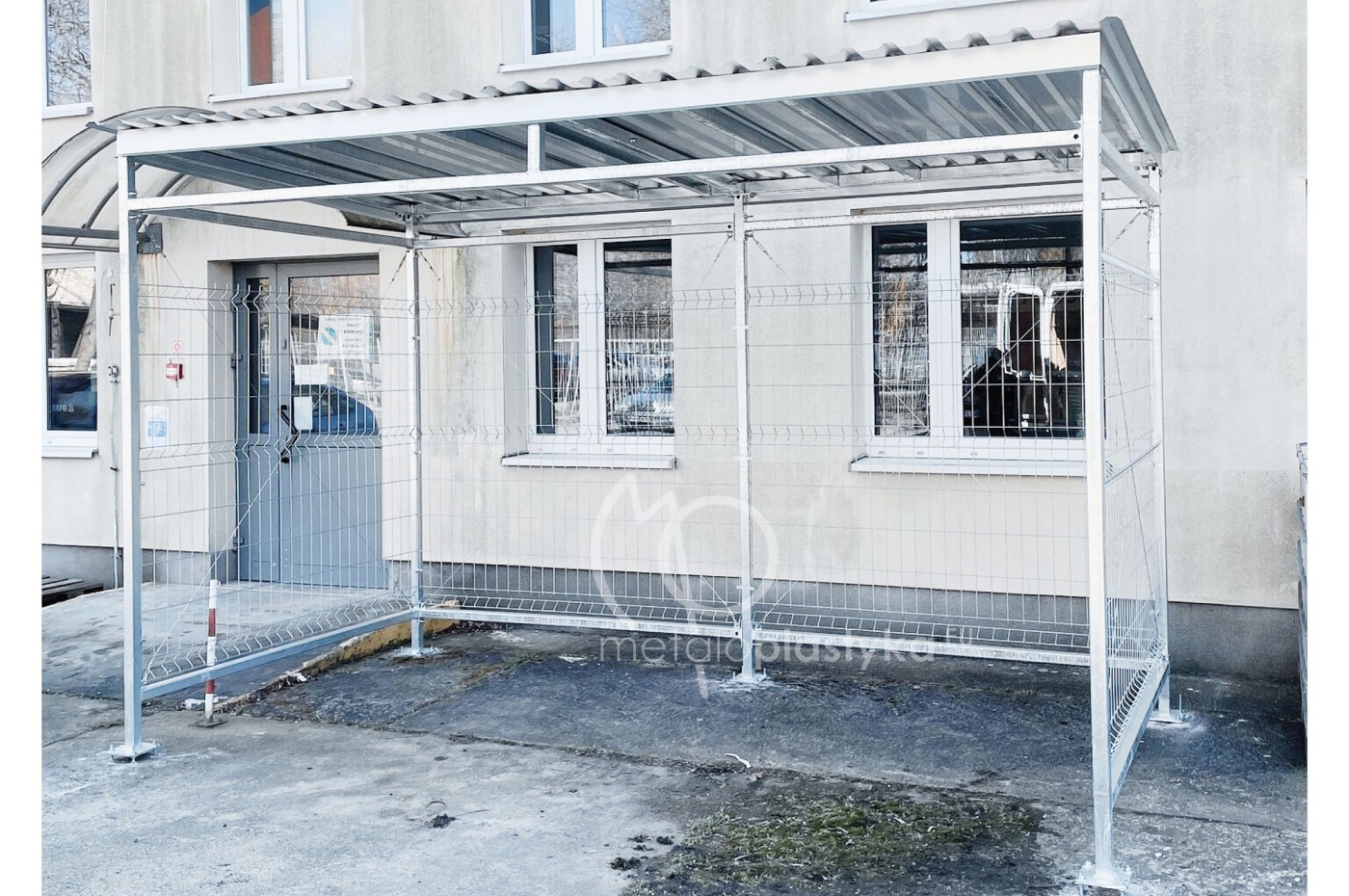 Konstruujemy i produkujemy stalowe wiaty śmietnikowe na kontenery śmietnikowe na kołach oraz dużę kosze śmietnikowe.