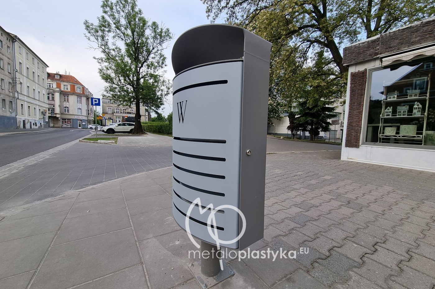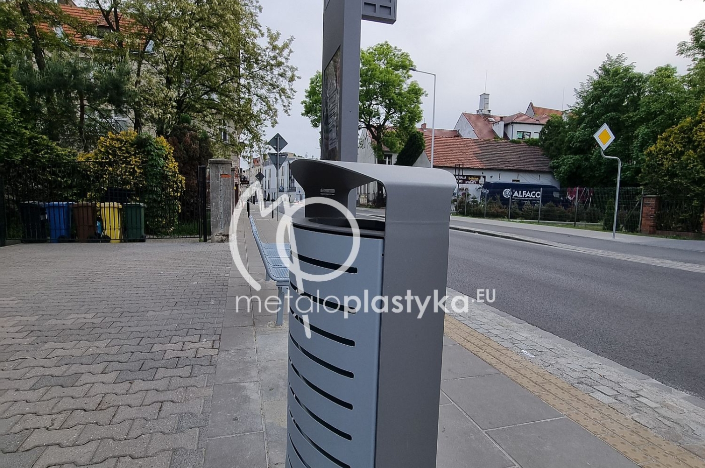 Nowoczesny kosz na śmieci zaprojektowany z myślą o estetyce i funkcjonalności miejskiej przestrzeni. Idealnie wpasowuje się w standardy małej architektury, zapewniając trwałość i łatwość użytkowania.