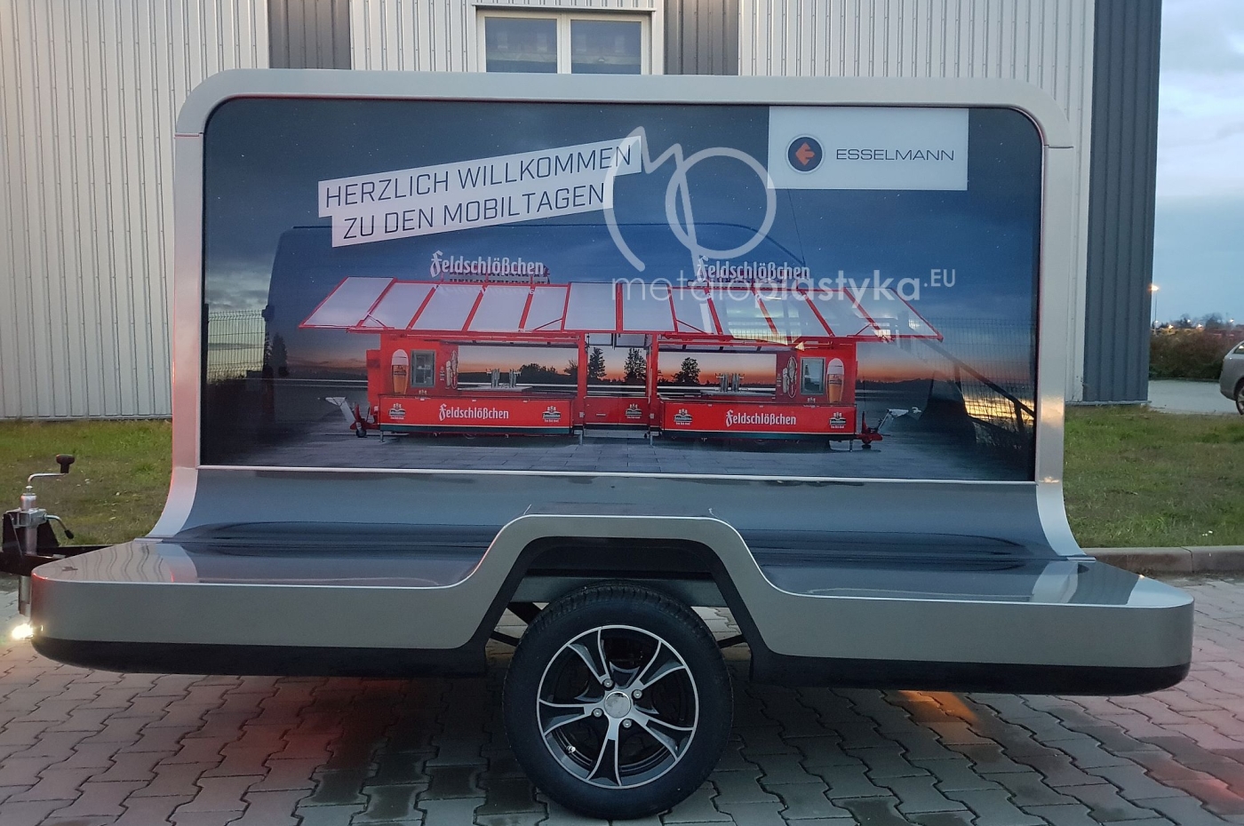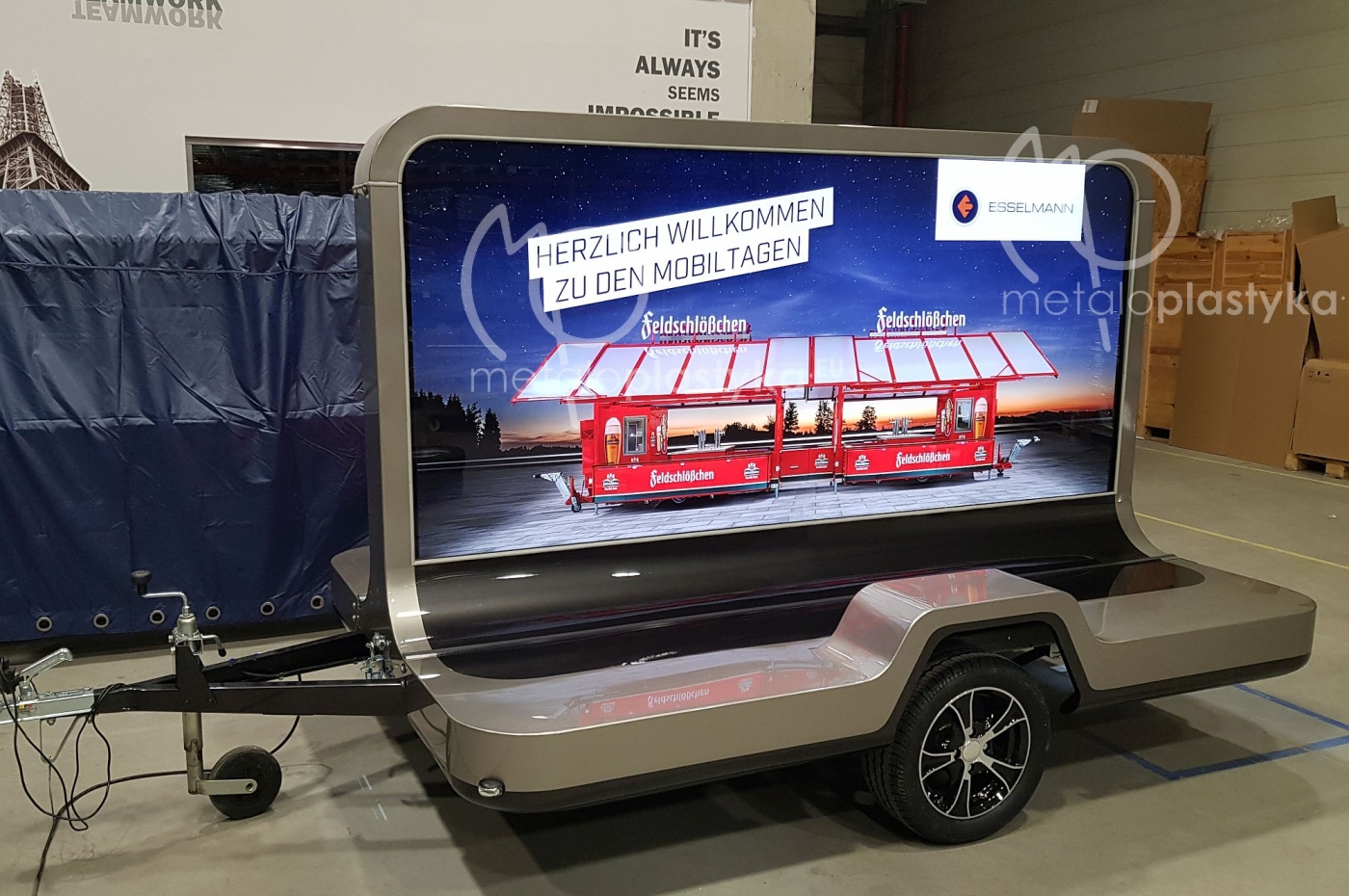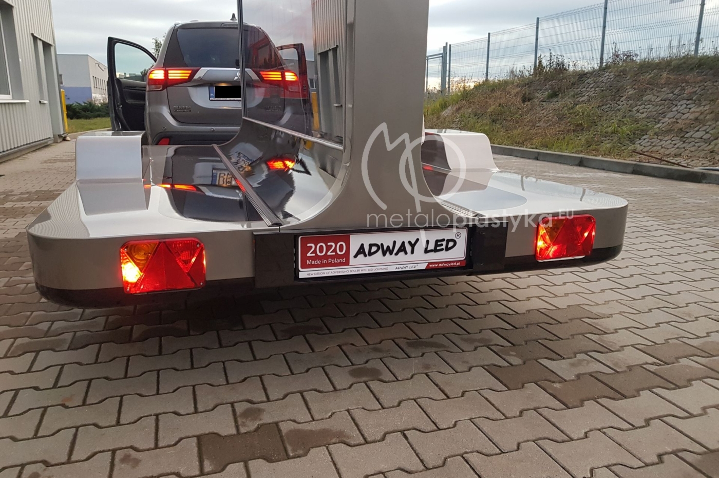 Jeśli poszukujesz przyczepy reklamowej dla marki premium i chciałbyś ją zaprezentować w sposób ekskluzywny, to przyczepa reklamowa ADWAY LED Metaloplastyka jest dla Ciebie. Oferujemy zaprojektowaną przyczepę reklamową podświetlaną LED ], z obustronną grafiką ze specjalnym rodzajem druku, idealnie odwzorowującym kolory po podświetleniu (bez efektu "wypłowiałych kolorów"). Grafika jest wymienna, czyli po kampanii reklamowe bądź informacyjnej jest możliwość łatwej wymiany.