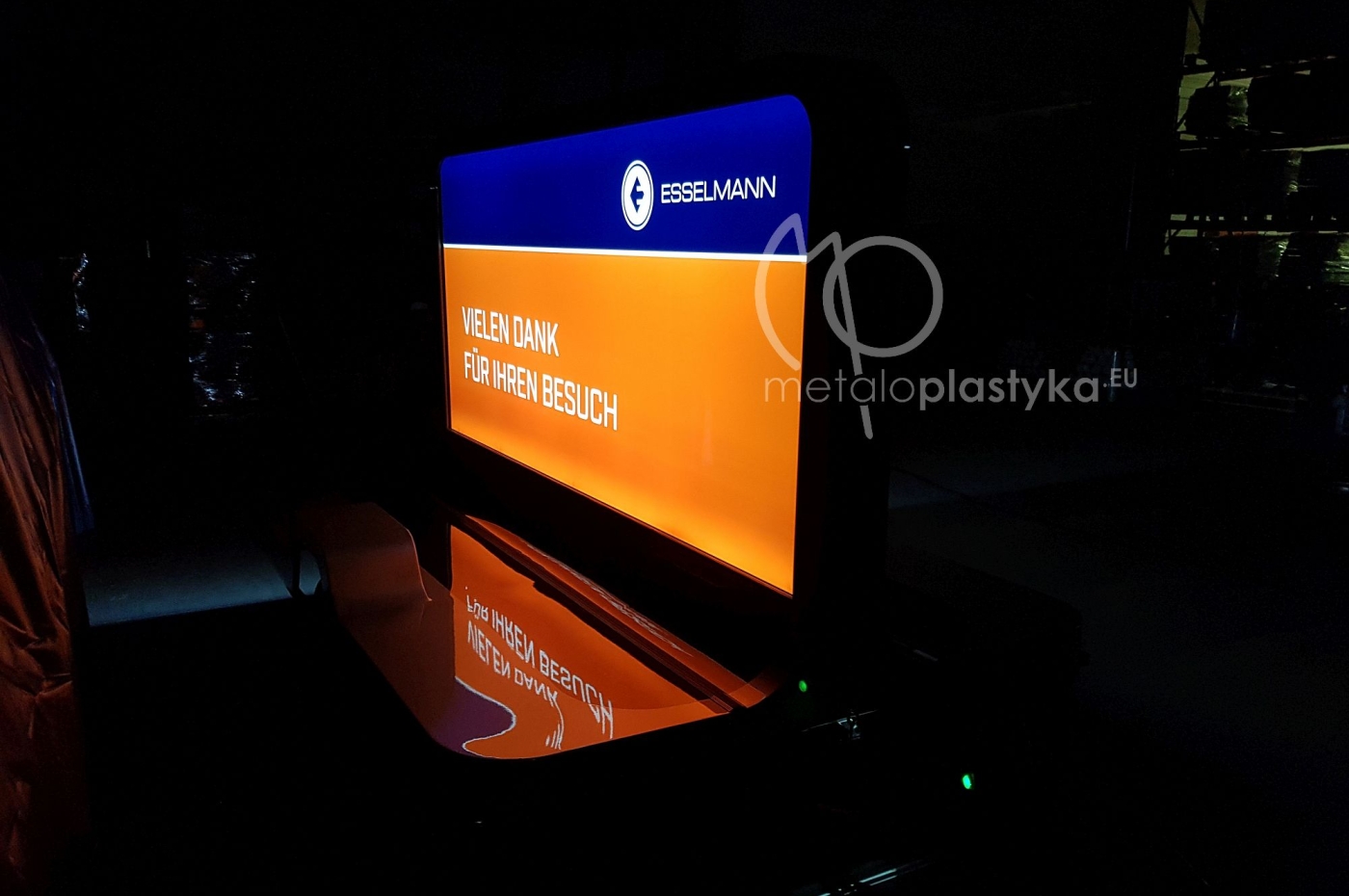 Rodzaj druku: druk UV do podświetleń na poliwęglanie litym bezbarwnym z efektem druku widzianym przez materiał (efekt "szkła").