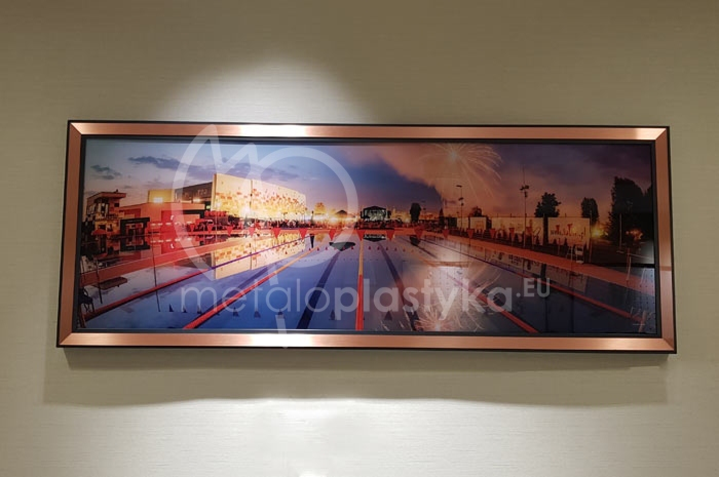 Specjalnie zaprojektowana rama aluminiowa o szerokości 50 mm i wysokości 40 mm, wraz z elementem ozdobnym w postaci paska szczotkowanej miedzi.