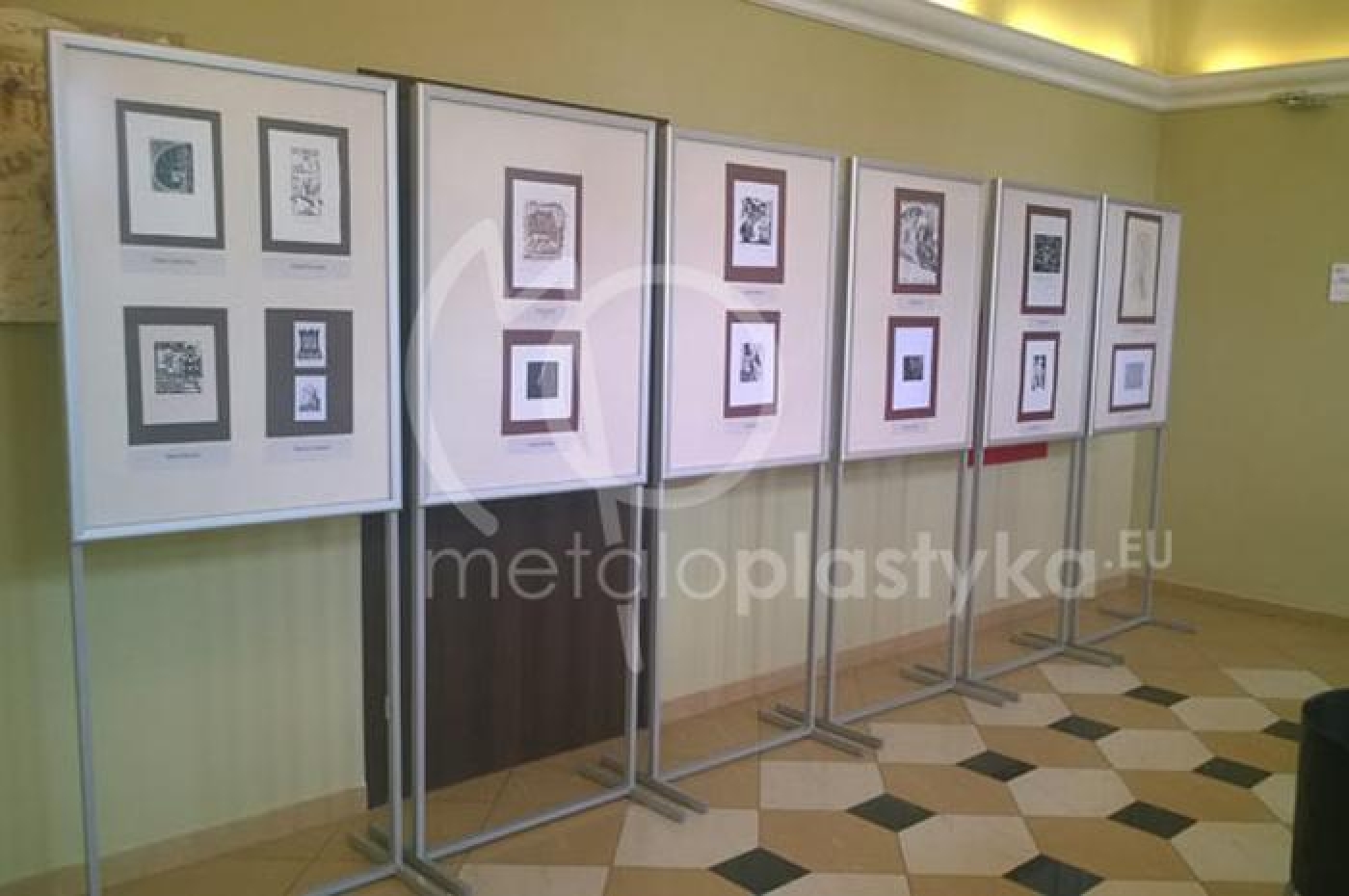Stelaż z 1 lub 2 ramami zatrzaskowymi, do prezentacji plakatów papierowych lub cienkiego tworzywa o grubości do 1 mm. Konstrukcja spawana z profili aluminiowych, nie jest demontowalna, lekka, nie umożliwia łączenia w ścianki.