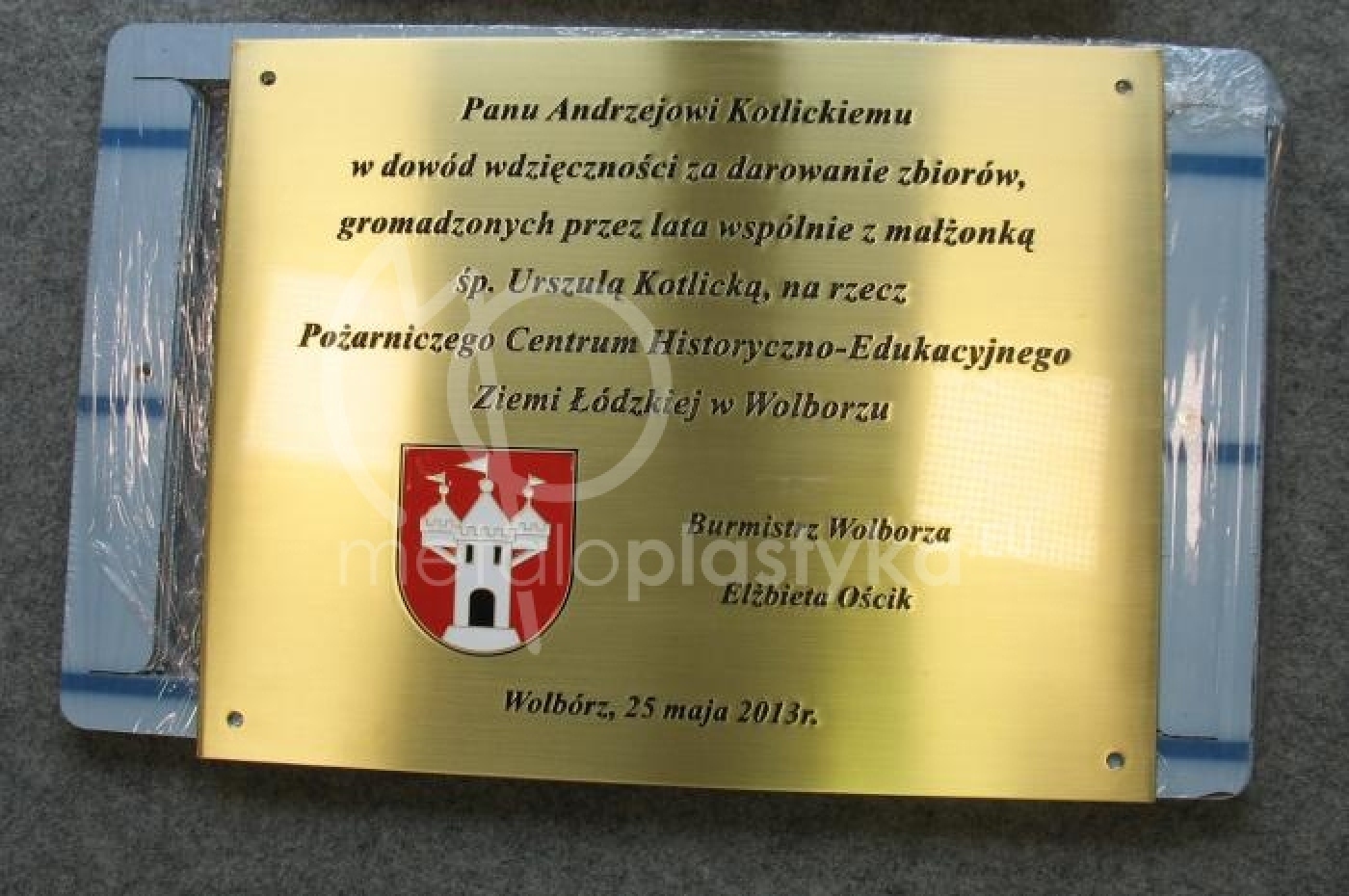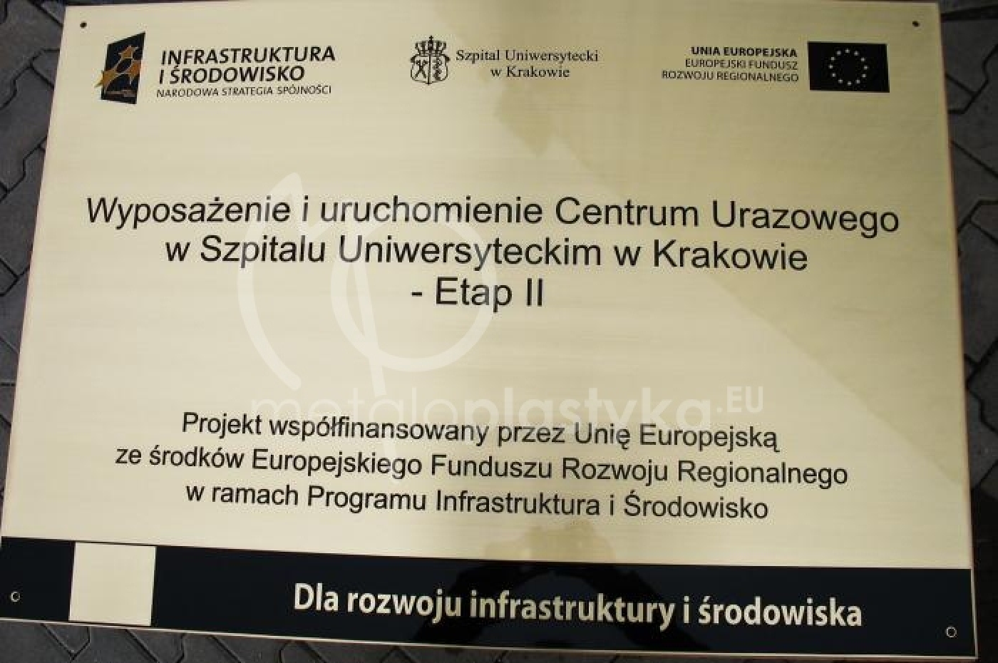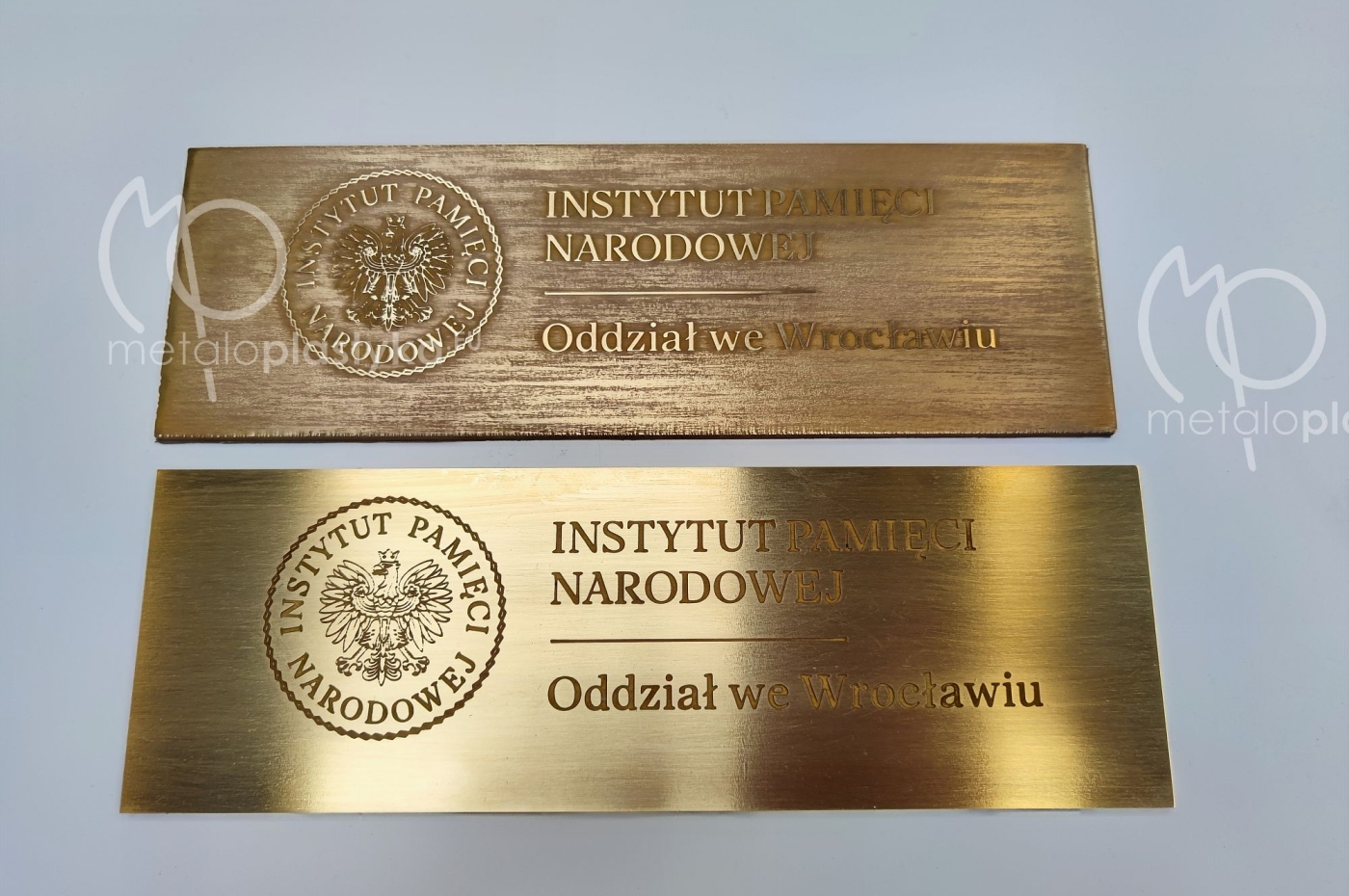 Tablice z mosiądzu wykonywane metodą chromatografii (wytrawiania) lub z nadrukiem UV.