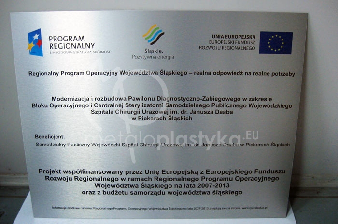 Tablice pamiątkowe, informacyjne i unijne. Materiał to płyta kompozytowa (aluminium i polietylen) - bardzo sztywna i twarda płyta choć tylko 3 mm grubości. Występuje w wielu kolorach i kilku rozmiarach. Idealna do tablic, reklam, kasetonów.