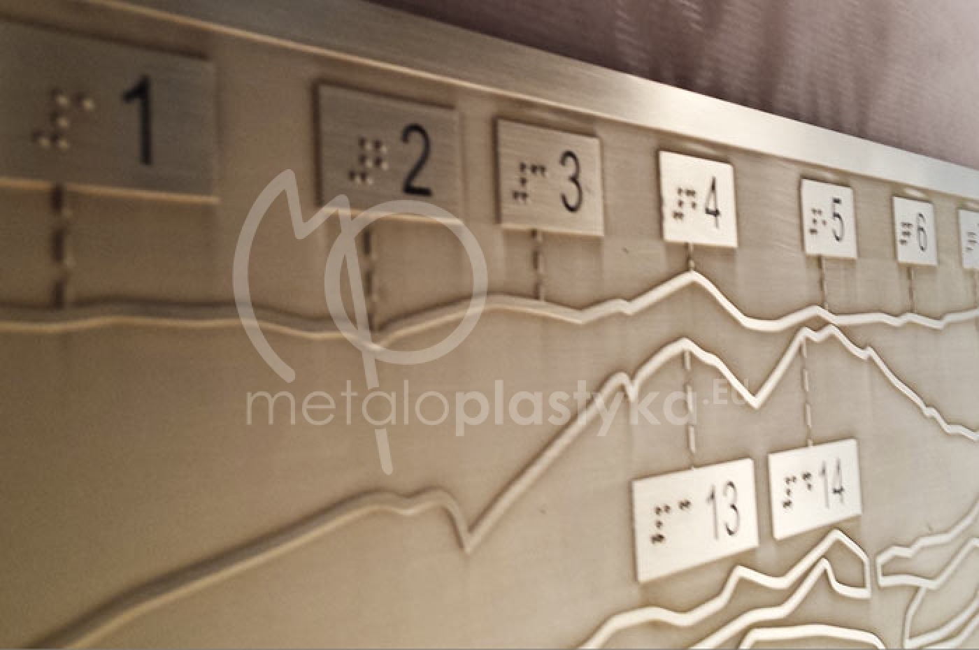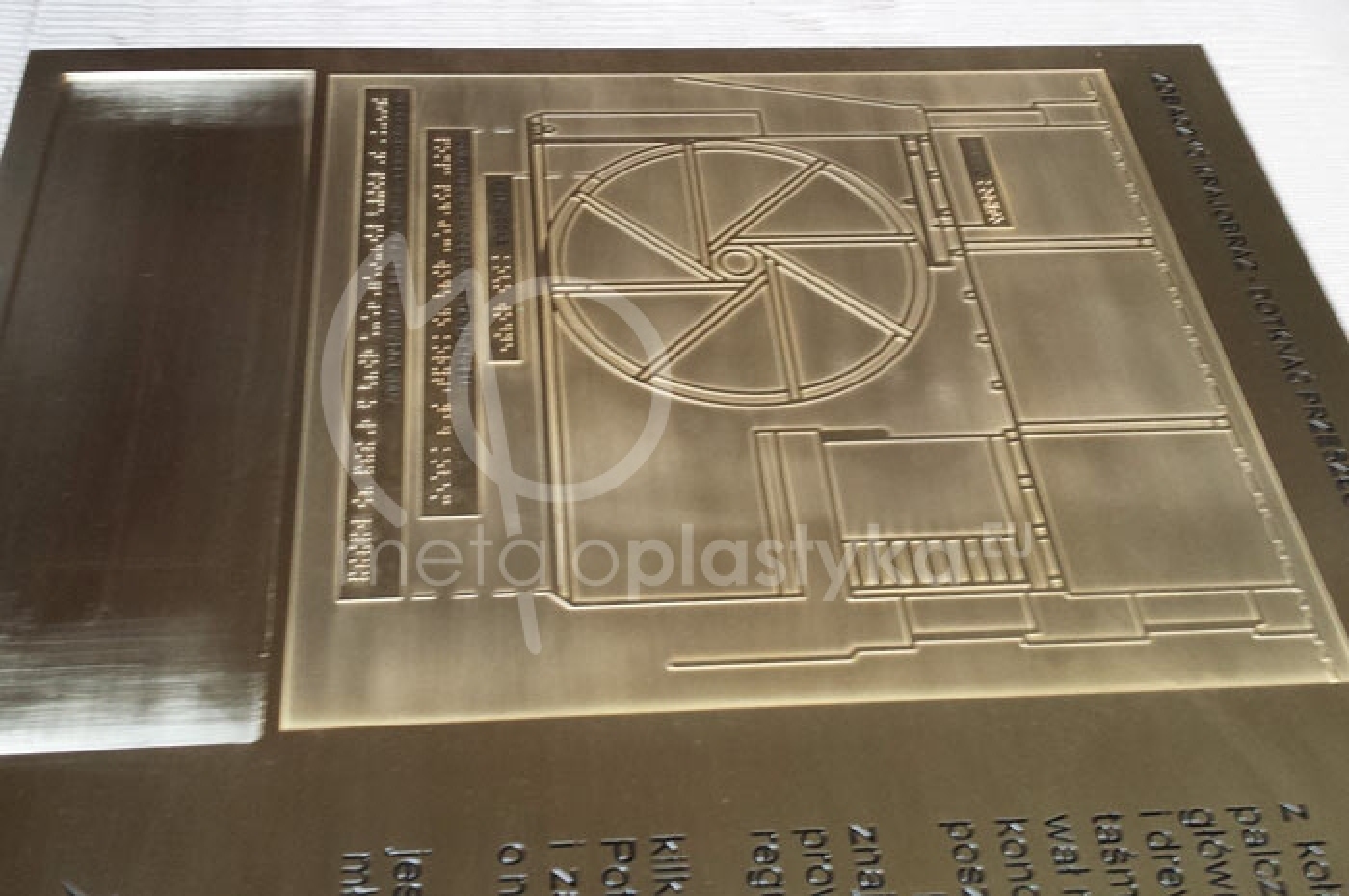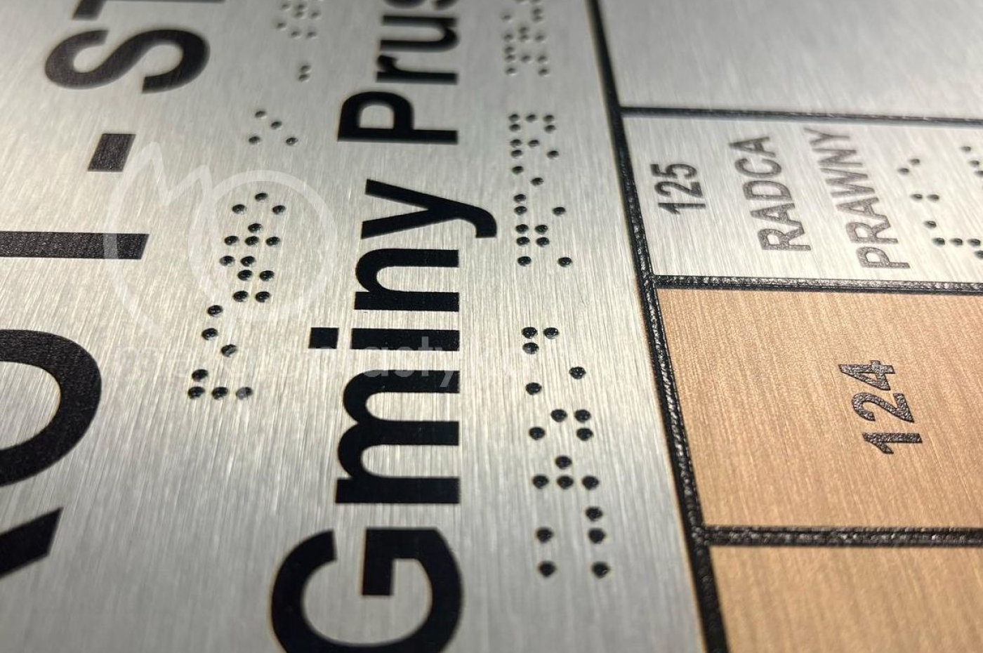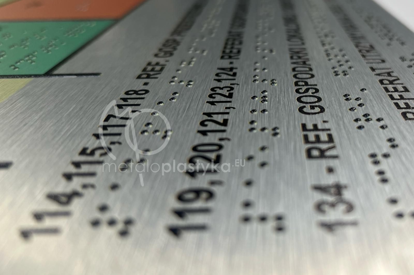 Wykonujemy tablice z tworzywa (pvc, dibond) z tłumaczeniem nadrukowanym wypukłym o odpowiedniej grubości czytelnej dla niewidomych.