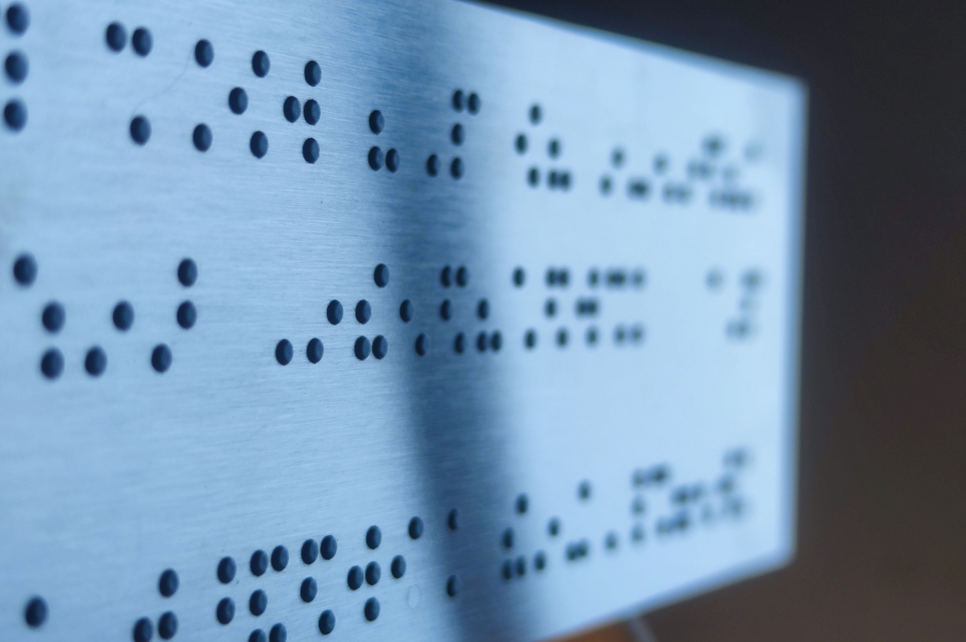 Tablice z tłumaczeniem na język Breille'a (dla niewidomych).