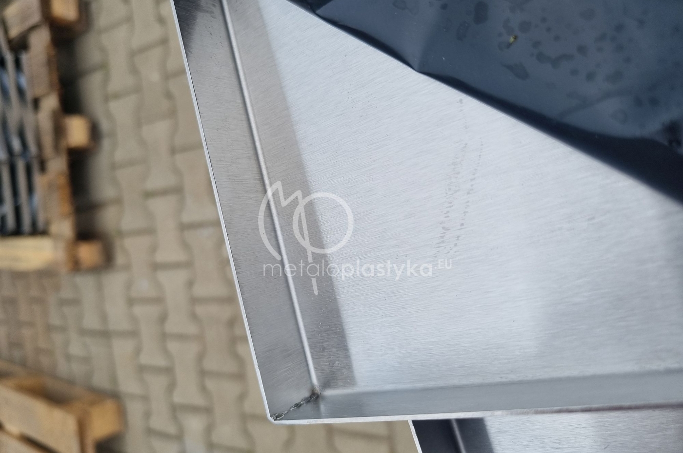 Wanna ociekowa ze stali nierdzewnej, niska, produkowana na wymiar, cięta laserowo, gięta i spawana.